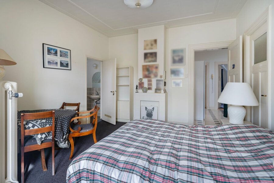 This floor accommodates four generous bedrooms. The front bedroom, featuring a fireplace, is currently used as a library/office and has access to the first balcony. The adjacent bedroom opens onto the second balcony. Both rooms share, together with a third bedroom, a walk-in closet and a bathroom with shower, washbasin, and separate toilet.