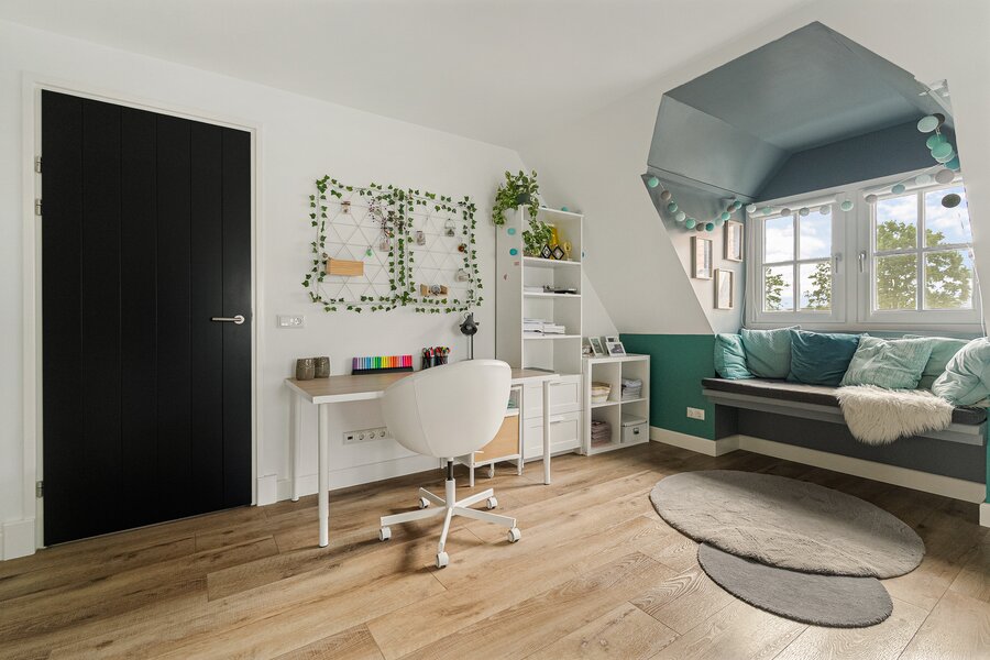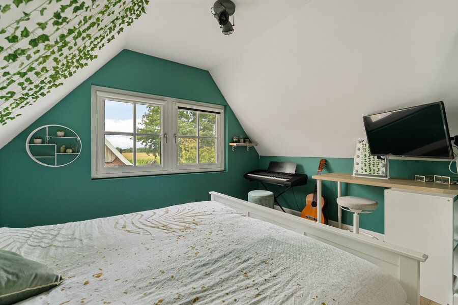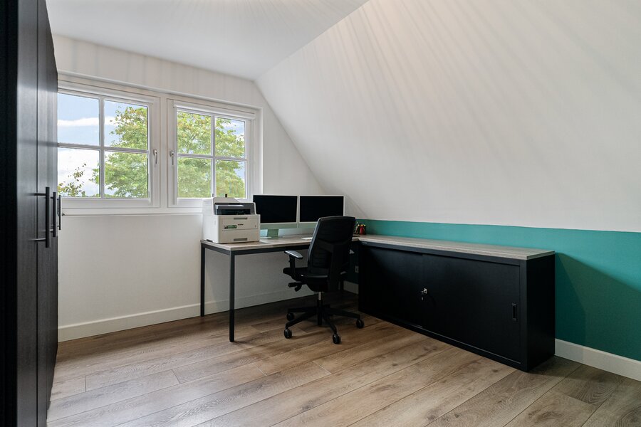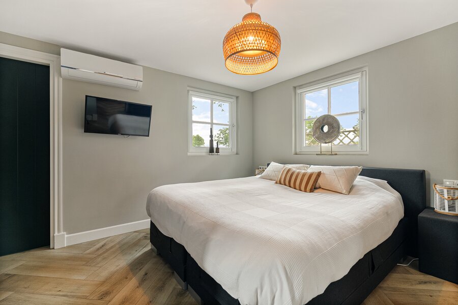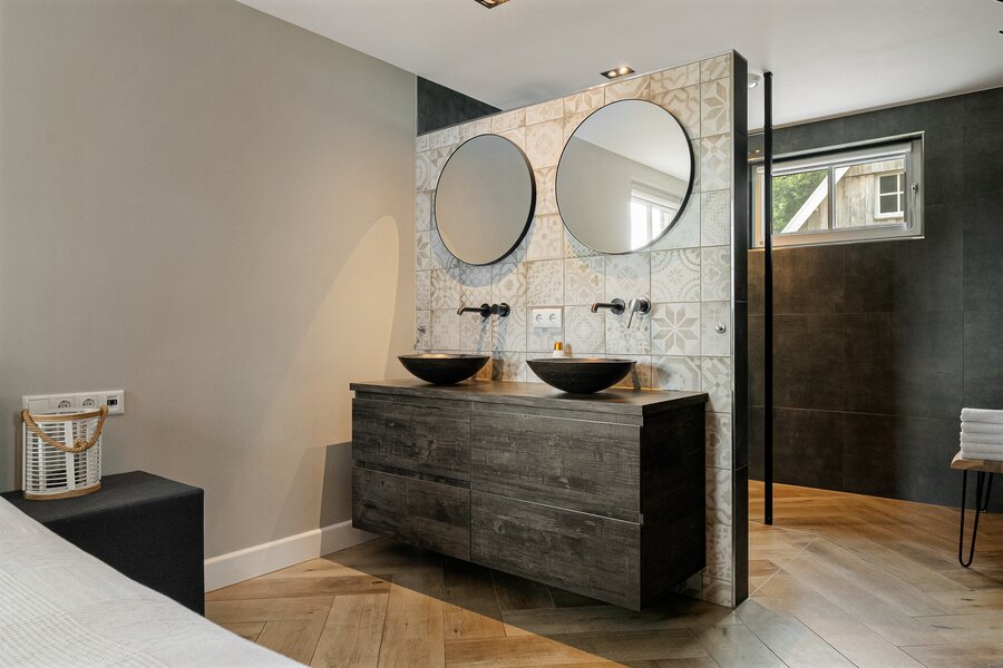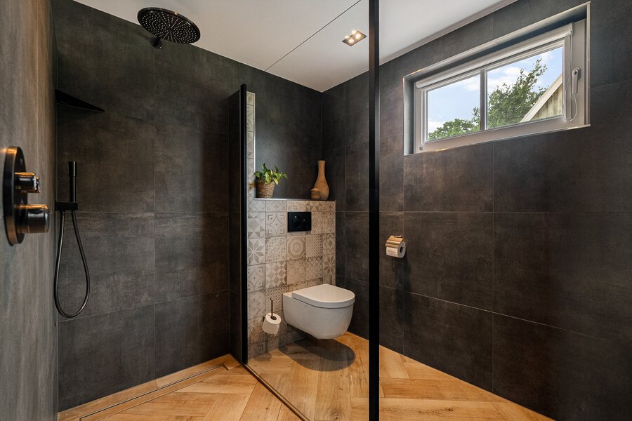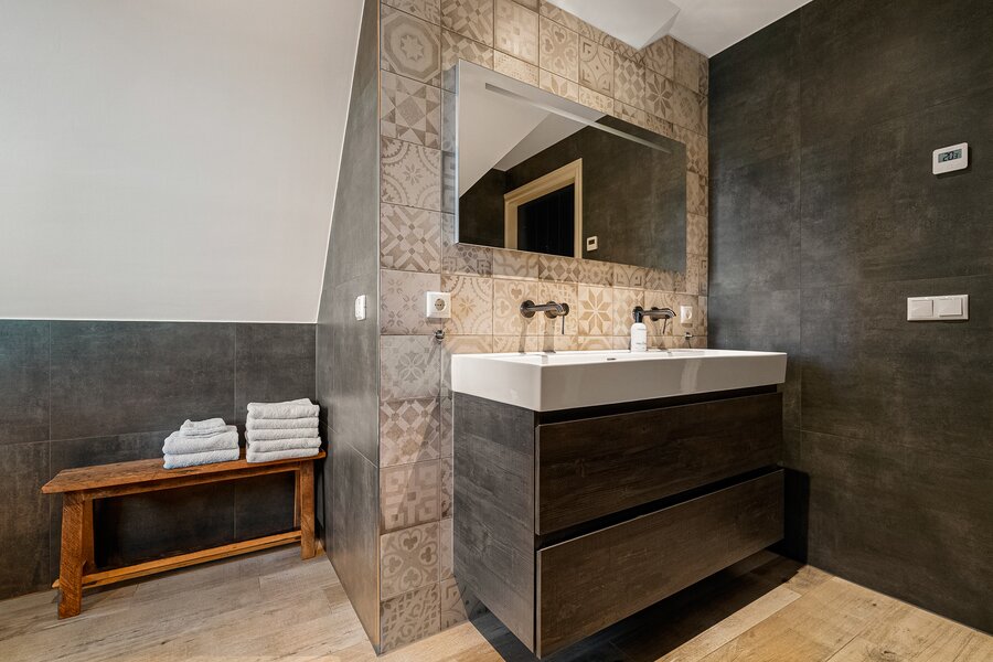 Op de begane grond vind je bovendien een royale slaapkamer met badkamer annex, voorzien van een dubbele wastafel, inloopdouche en toilet. Dankzij deze indeling is gelijkvloers wonen hier eenvoudig mogelijk, zonder in te leveren op luxe.