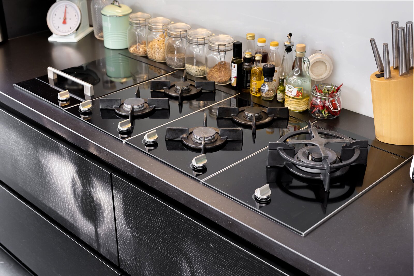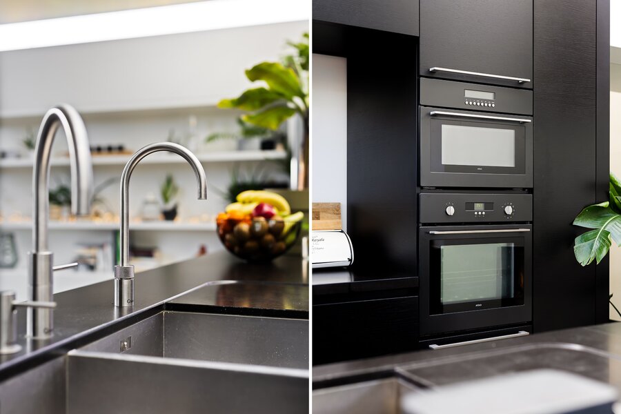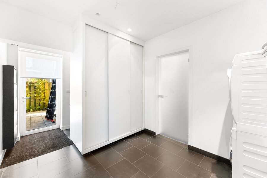 Het keukenblok, compleet met natuurstenen blad, Quooker, combi-oven/magnetron, wokbrander en ingebouwde frituur, is een droom voor culinaire liefhebbers. De ruimte tussen keuken en tuin is perfect voor een royale eettafel, terwijl een op maat gemaakte boekenkast functioneel en stijlvol oogt. De aangrenzende bijkeuken biedt extra kastruimte en aansluitingen voor wasmachine en droger, plus een douche-ruimte ideaal voor een sauna of als toevoeging bij de naastgelegen slaap-/werkkamer.