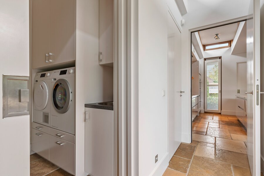 Voor de technische ruimte, waar de mechanische ventilatie-unit en de boiler voor de badkamer zijn geplaatst, is eveneens volop bergruimte beschikbaar. Hier kun je eenvoudig seizoensspullen, koffers of sportuitrusting opbergen.