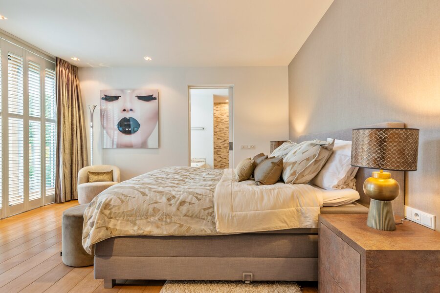 SLAAPKAMER, KLEEDKAMER EN LUXE BADKAMER OP DE BEGANE GROND
