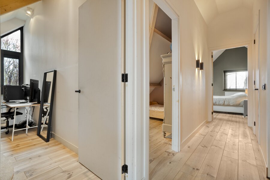 Binnen ervaart u direct de ruimte en het licht. Grote raampartijen verbinden binnen met buiten en zorgen ieder seizoen voor een prachtig uitzicht. De woning beschikt over vier royale slaapkamers en een separaat kantoor, waardoor er volop plek is voor gezin, werk aan huis of gasten die willen blijven logeren.