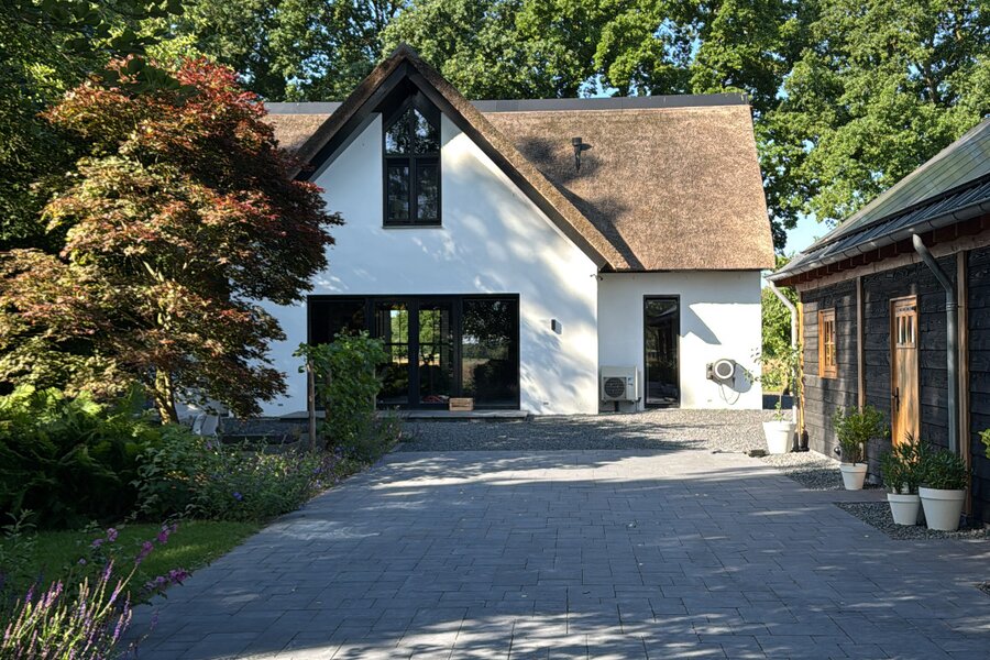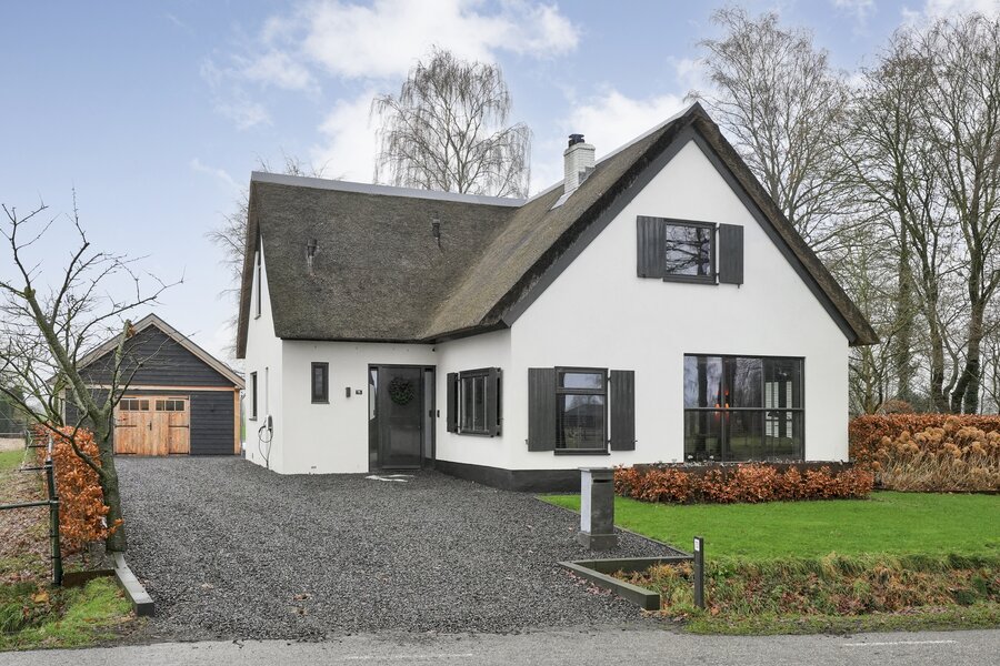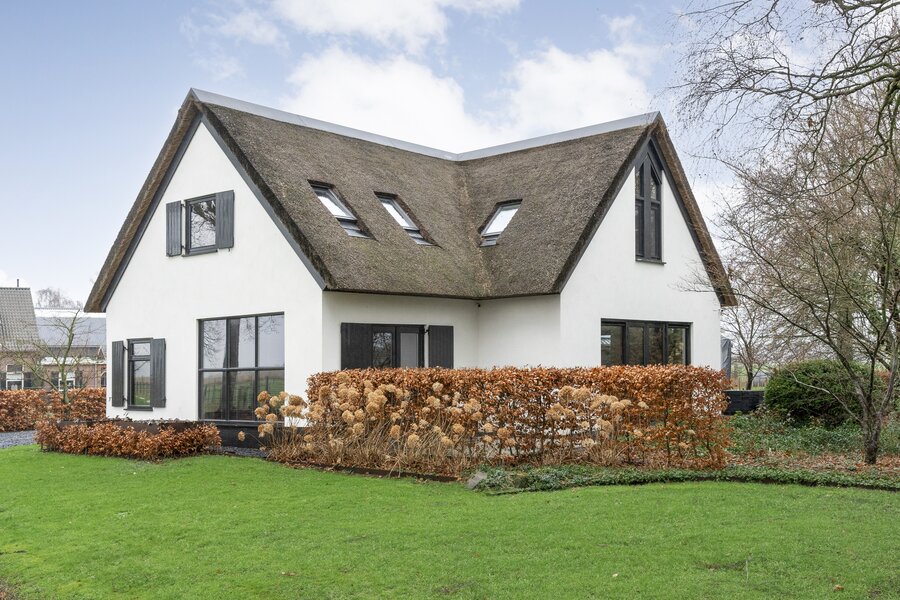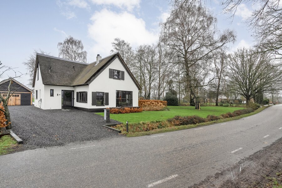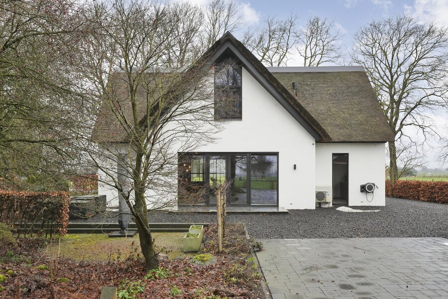 Stel u voor: wakker worden met het geluid van vogels, uitkijken over het groen en thuiskomen op een plek waar rust en comfort vanzelfsprekend zijn. In het buitengebied van Beemte Broekland staat deze bijzondere, vrijstaande rietgedekte woning, waar landelijke charme en moderne luxe elkaar perfect ontmoeten. In 2022 is de woning met veel zorg en visie vrijwel volledig opnieuw gebouwd. Alleen de voorgevel en twee zijgevels herinneren nog aan het verleden; alles daarachter is nieuw, duurzaam en ontworpen voor comfortabel wonen van nu. Het resultaat is een stijlvolle, eigentijdse woning met een warme uitstraling en een uitzonderlijk A+++ energielabel, klaar voor de toekomst.