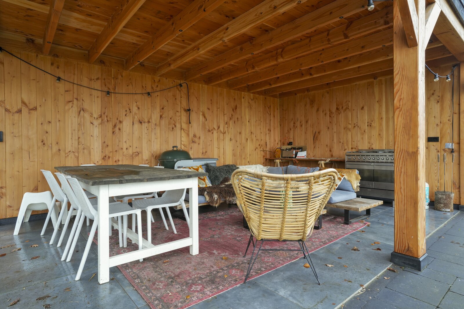 Buiten: het geheel is gelegen op een perceel van maar liefst 4870 m². Onlangs is er een bijgebouw gerealiseerd. Dit bijgebouw is geïsoleerd (behoudens de deuren) en voorzien van warm en koud water en een toiletruimte. Op de verdieping is een kamer aanwezig en veel bergruimte. De achterzijde is voorzien van een veranda met fraai uitzicht over de landerijen.