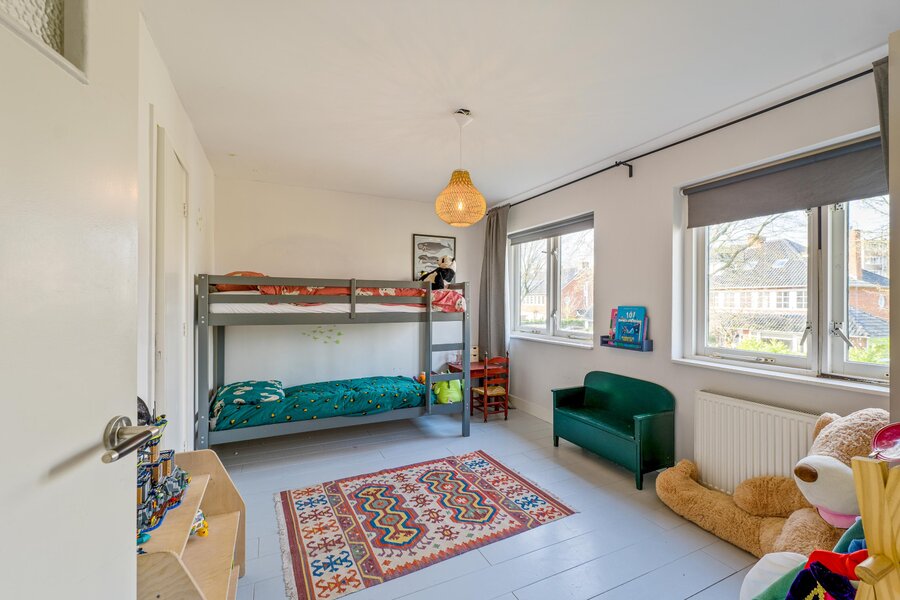 In het fraaie Componistenkwartier ligt dit ruime gezinshuis (energielabel A) met 5 slaapkamers, 2 badkamers en zonnige tuin. De tuin is vrij gelegen, 18 meter diep en heeft een vrijstaand kantoortje/tuinhuis met overdekte veranda en een achterom.