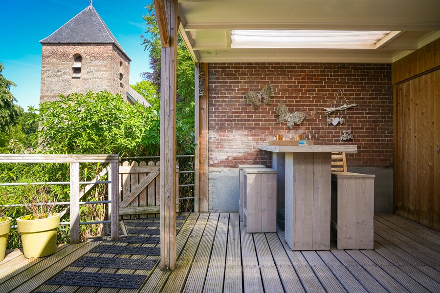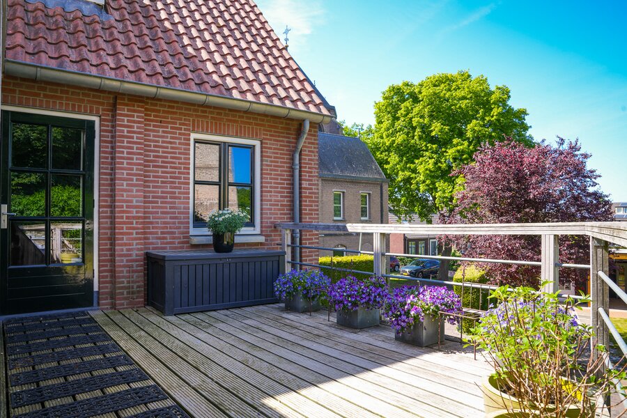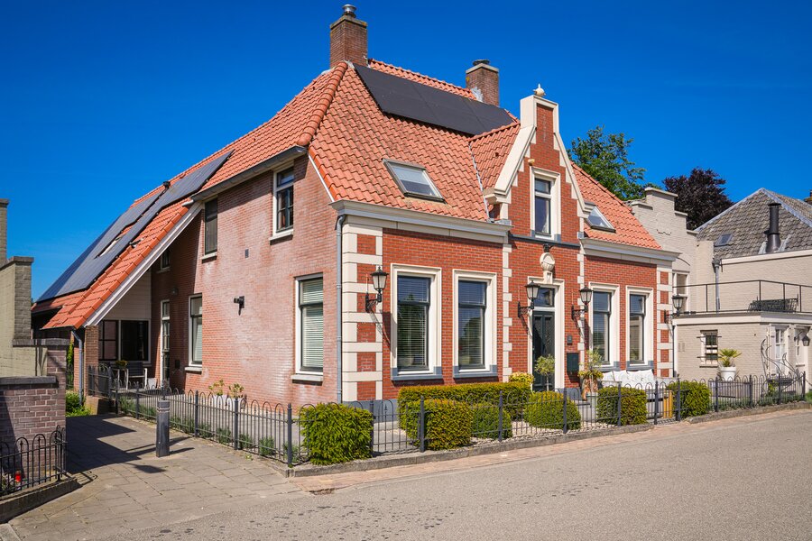 Hier geniet je dagelijks van een spectaculair uitzicht over de Maas en haar uiterwaarden. ‘Ge wont hier mooi’ prijkt dan ook terecht op de vriendelijke gevel van deze charmante dijkwoning. Aan de achterzijde zorgt de naastgelegen kerk juist weer voor rust, sfeer en beschutting in de prachtig aangelegde tuin met meerdere terrassen. In deze villa is niet alleen de ligging uniek, maar ook de ruimte en afwerking. De royale living met open keuken –in vroegere tijden het café-gedeelte – ademt warmte en gastvrijheid. Hier is plek voor het hele gezin: bij de gashaard, aan tafel met uitzicht, of spelend op de houten vloer. Er zijn maar liefst vijf slaapkamers, met volop leefruimte voor ieder gezinslid. De master bedroom in het achterhuis is bijzonder royaal en heeft een eigen badkamer-en-suite. De hotel chique afwerking, openslaande deuren naar het dakterras en het uitzicht maken dit vertrek tot een waar slaapparadijs. Ook buiten is het genieten. De tuin is tot in detail verzorgd, met een veranda, buitenkeuken en berging. Een heerlijke plek om lange zomeravonden door te brengen met familie en vrienden. In dit pand, herbouwd in 2000, was ooit café ‘Het Mandje’ gevestigd. Die gemoedelijke sfeer leeft hier nog steeds voort – maar dan in de vorm van comfortabel, stijlvol en ruim wonen op een van de mooiste plekken aan de Maas.