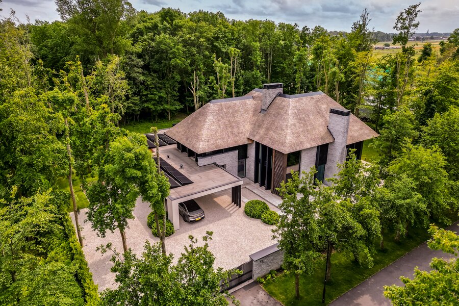 With great pride, we present this extraordinary thatched villa on an exceptionally generous plot of 14,625 m². Recently completed in 2024, the villa is in pristine condition and located on the prestigious Landgoed Sancta Maria estate, in the heart of the famous Dune and Bulb Region. Here, contemporary comfort meets timeless elegance – a true family residence where luxury, tranquility, and nature come together in perfect harmony.