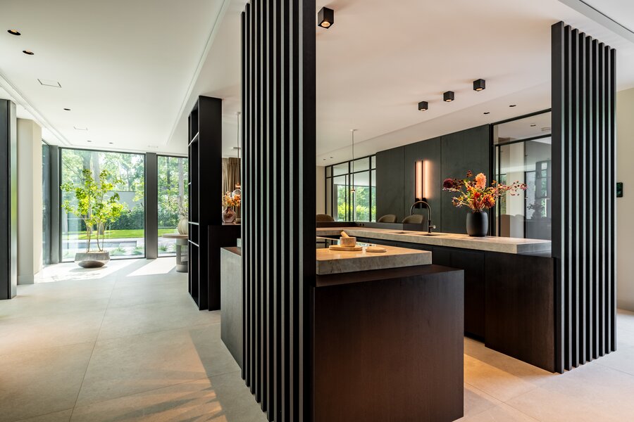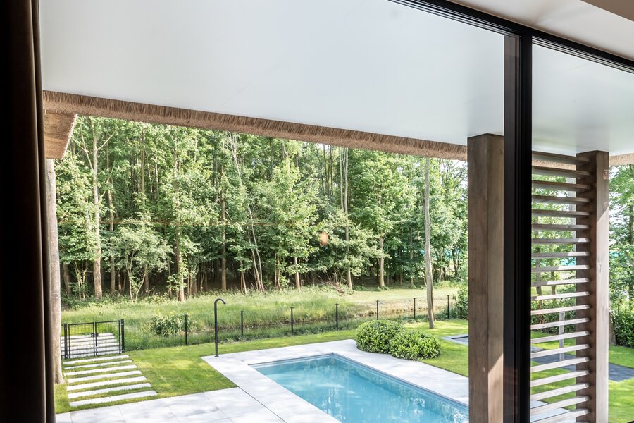 The garden is a true outdoor paradise. Multiple (covered) terraces, a cozy outdoor fireplace, a fully equipped outdoor kitchen, a heated swimming pool with outdoor shower – everything is designed for the ultimate outdoor lifestyle. Enjoy breakfast in the morning sun, lunch in the shade, or evening drinks at sunset.