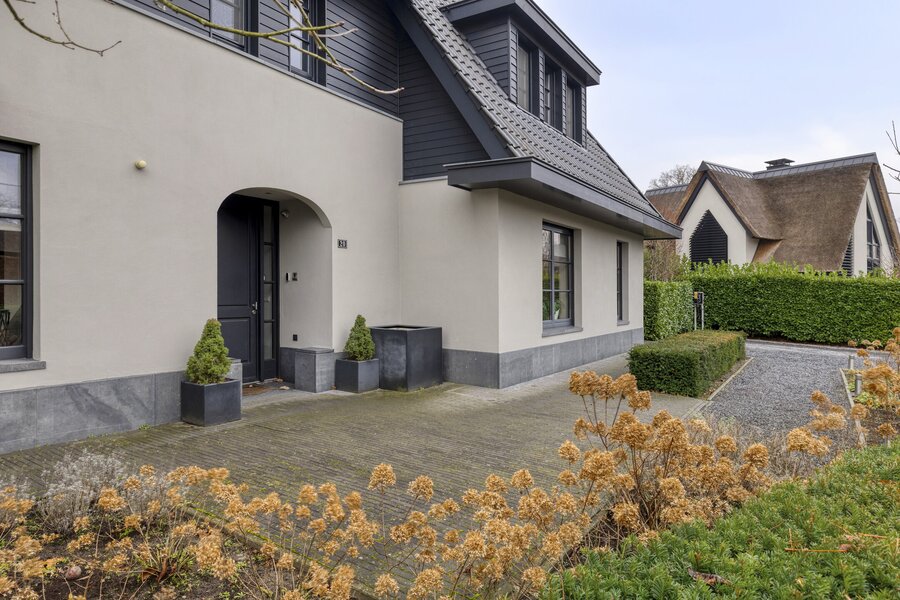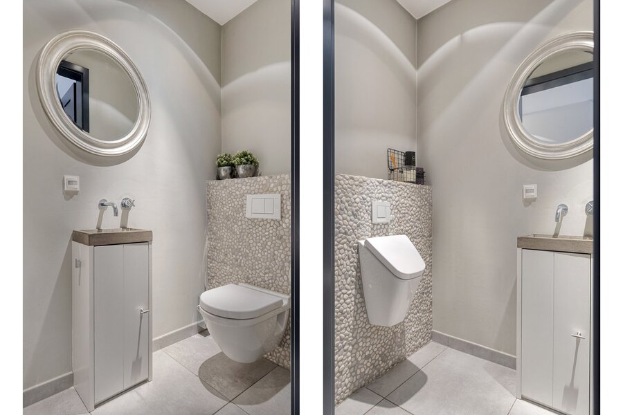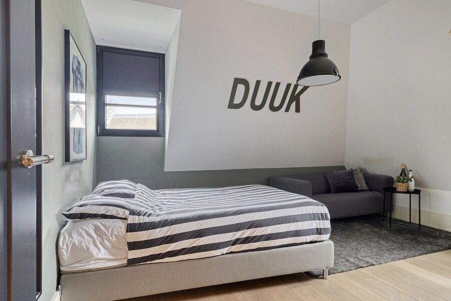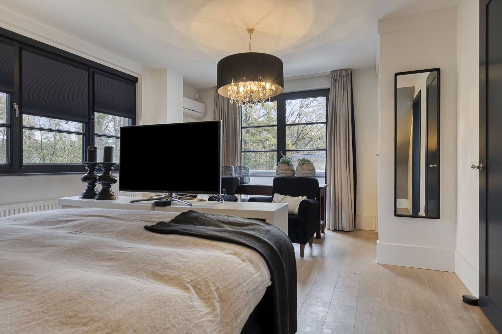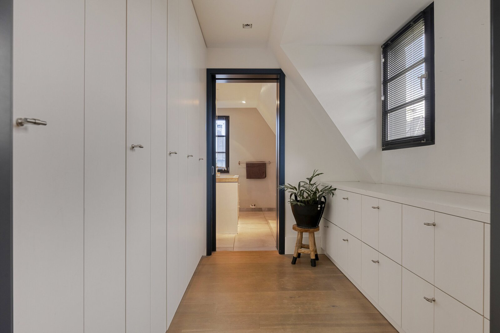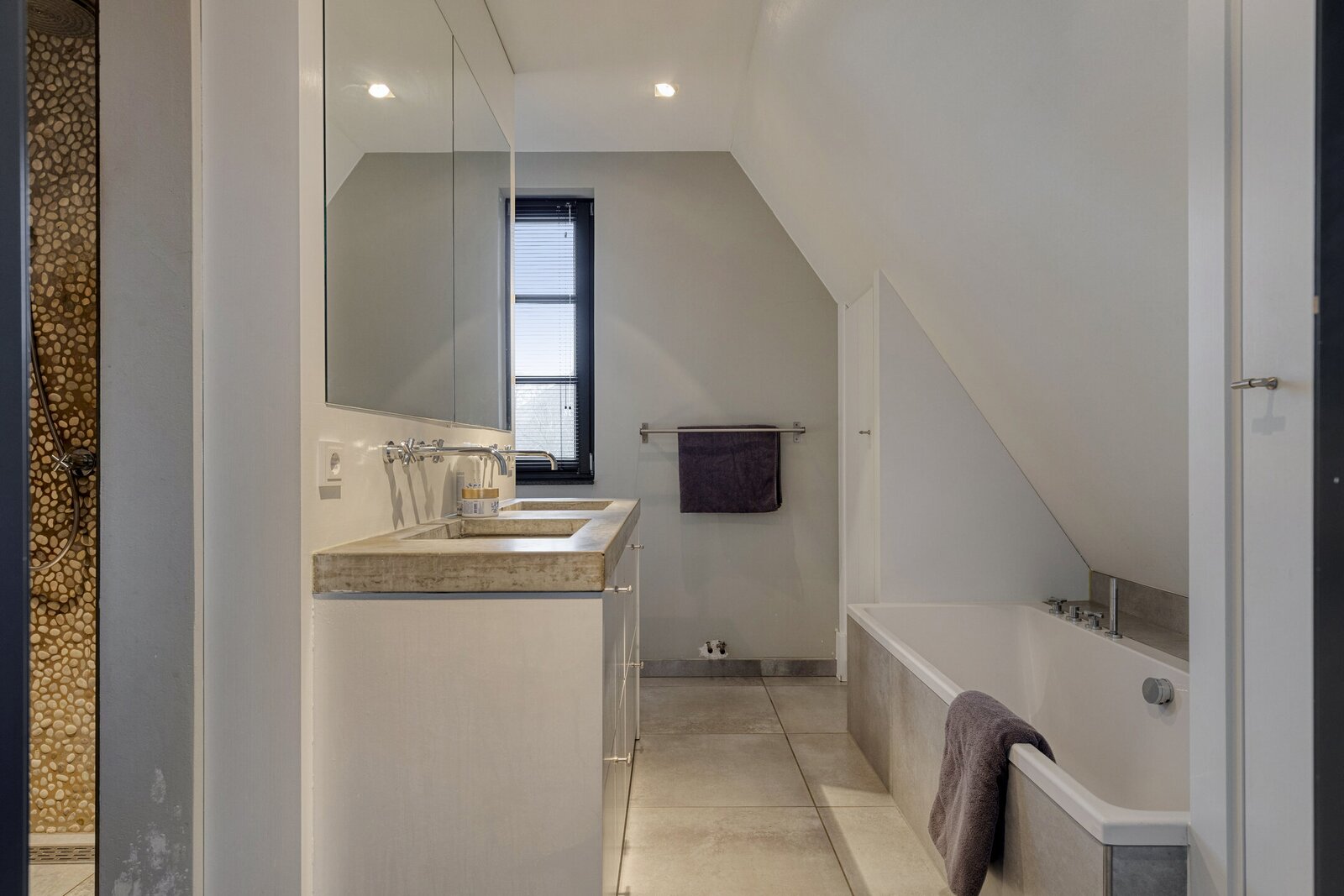 De ouderslaapkamer beschikt over een inloopkast met directe toegang tot de luxe privébadkamer, voorzien van een ligbad, op maat gemaakt wastafelmeubel met dubbele wastafel, vrijdragend toilet en een inloopdouche met regendouche en inbouwthermostaatkraan.