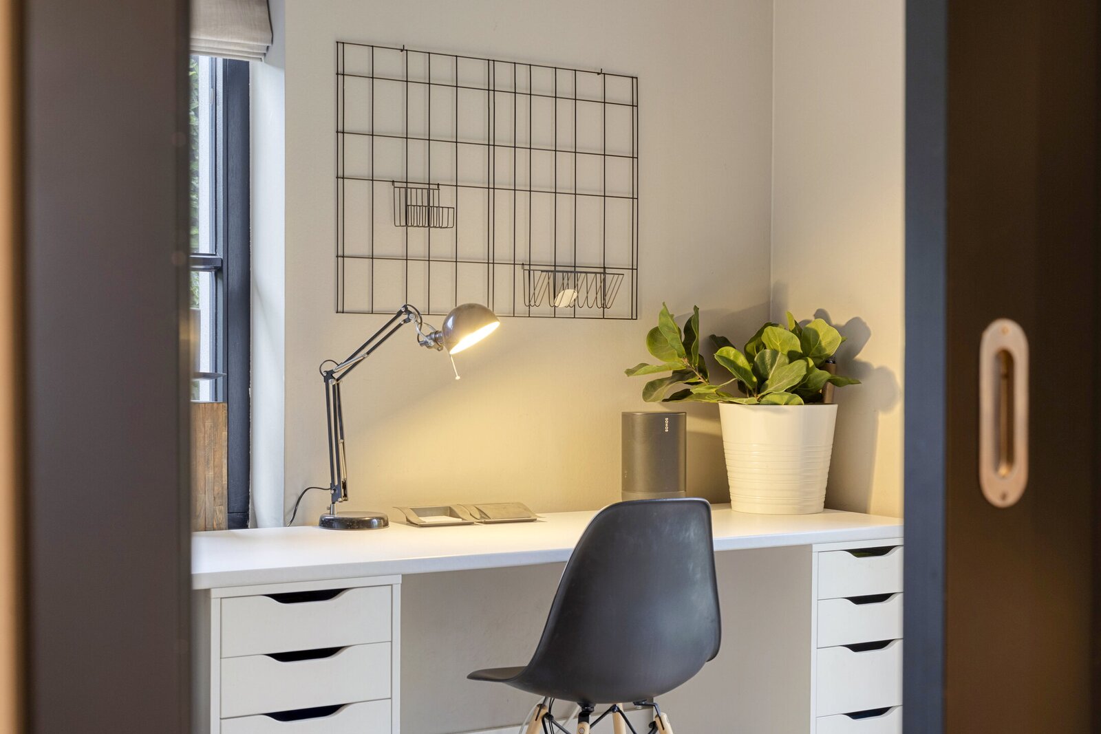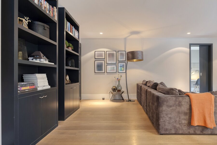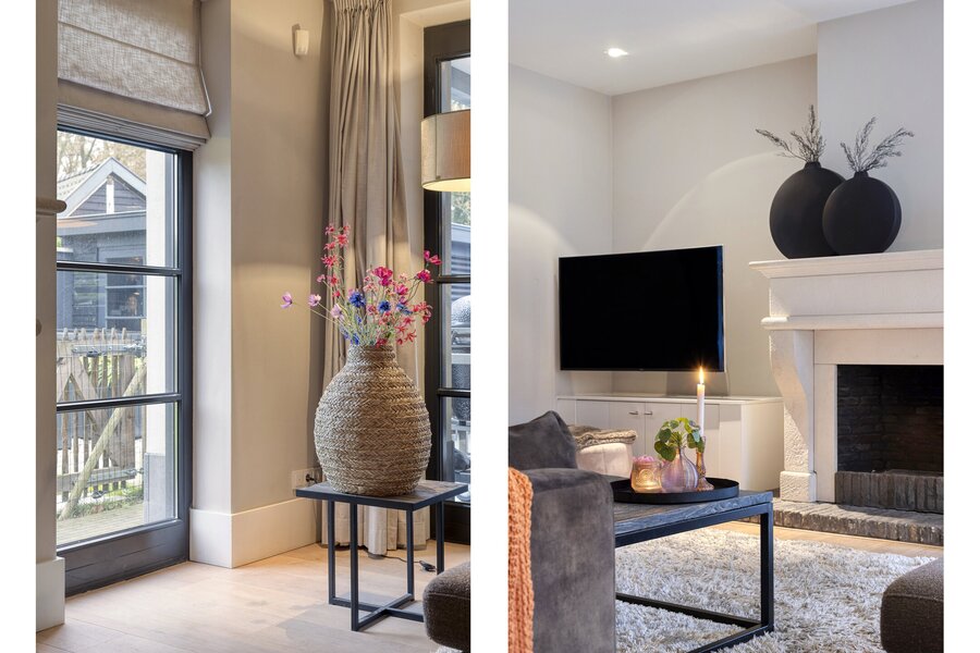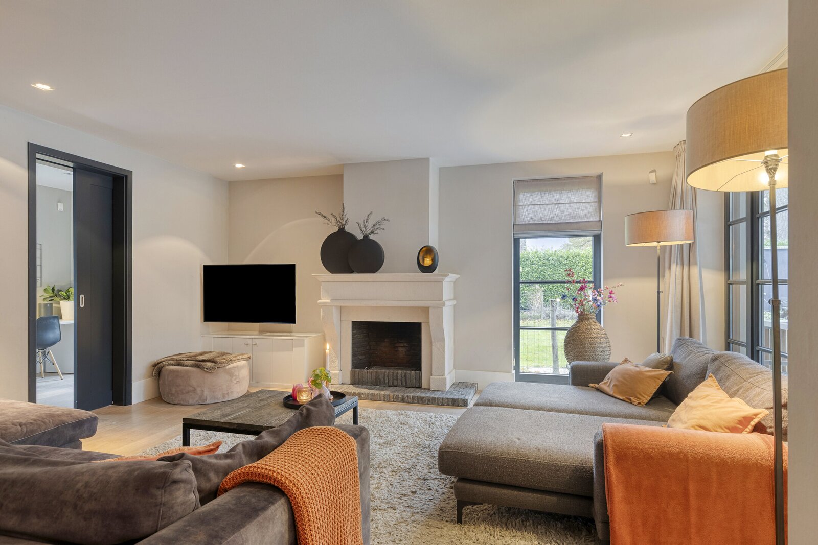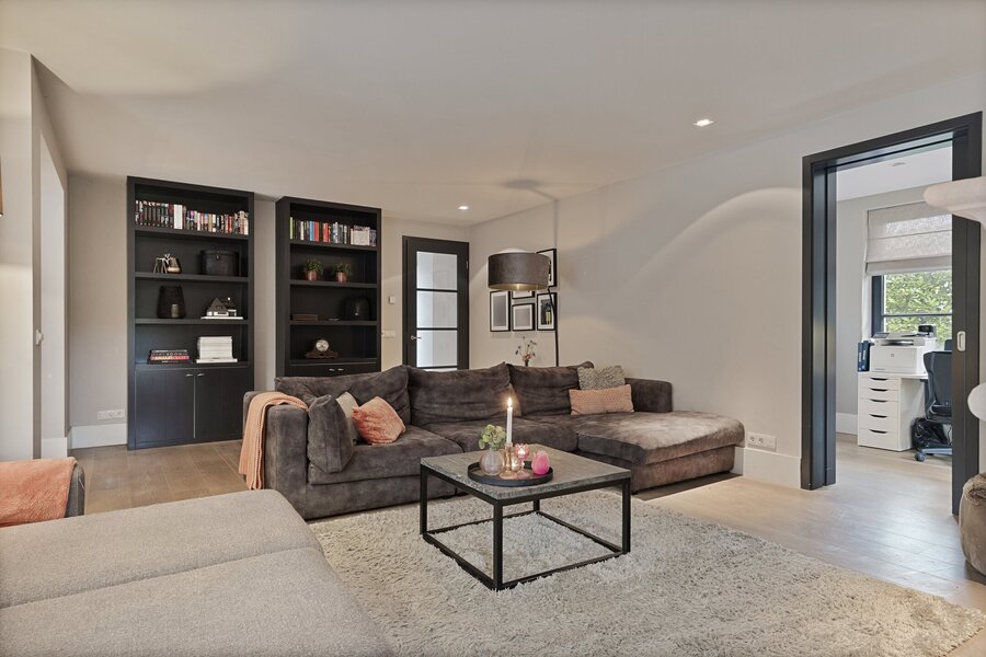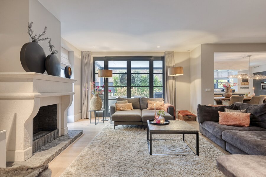 De riante living is heerlijk licht dankzij de vele raampartijen en kijkt uit over de achtertuin. De ruimte is voorzien van tuindeuren en een open haard en kan middels schuifdeuren worden afgesloten van de extra (tweede) werkkamer, ideaal voor thuiswerken of studeren.