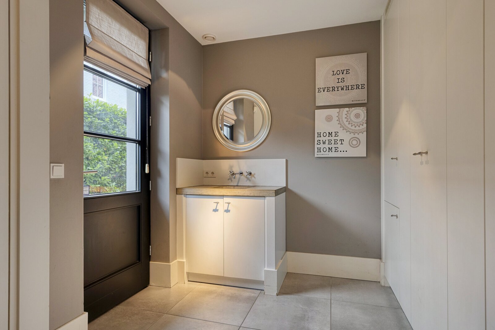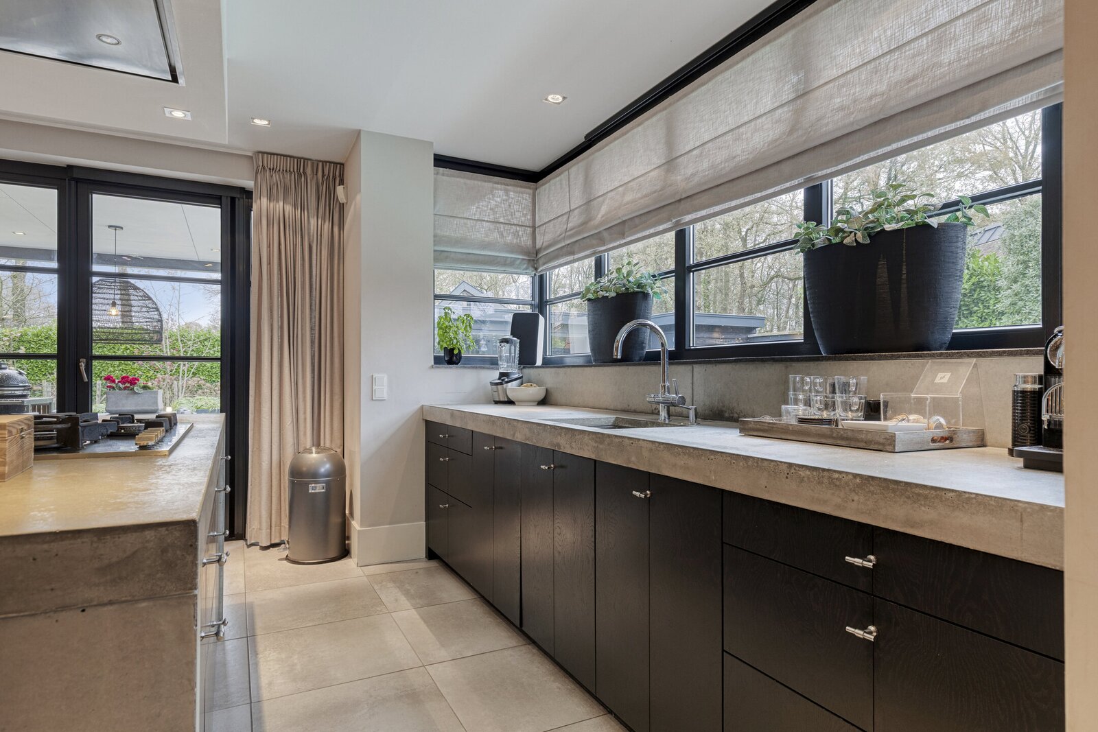 De bijkeuken beschikt over een extra aanrechtblok, een ruime kastenwand en een praktische buitendeur – ideaal voor het binnenbrengen van boodschappen.