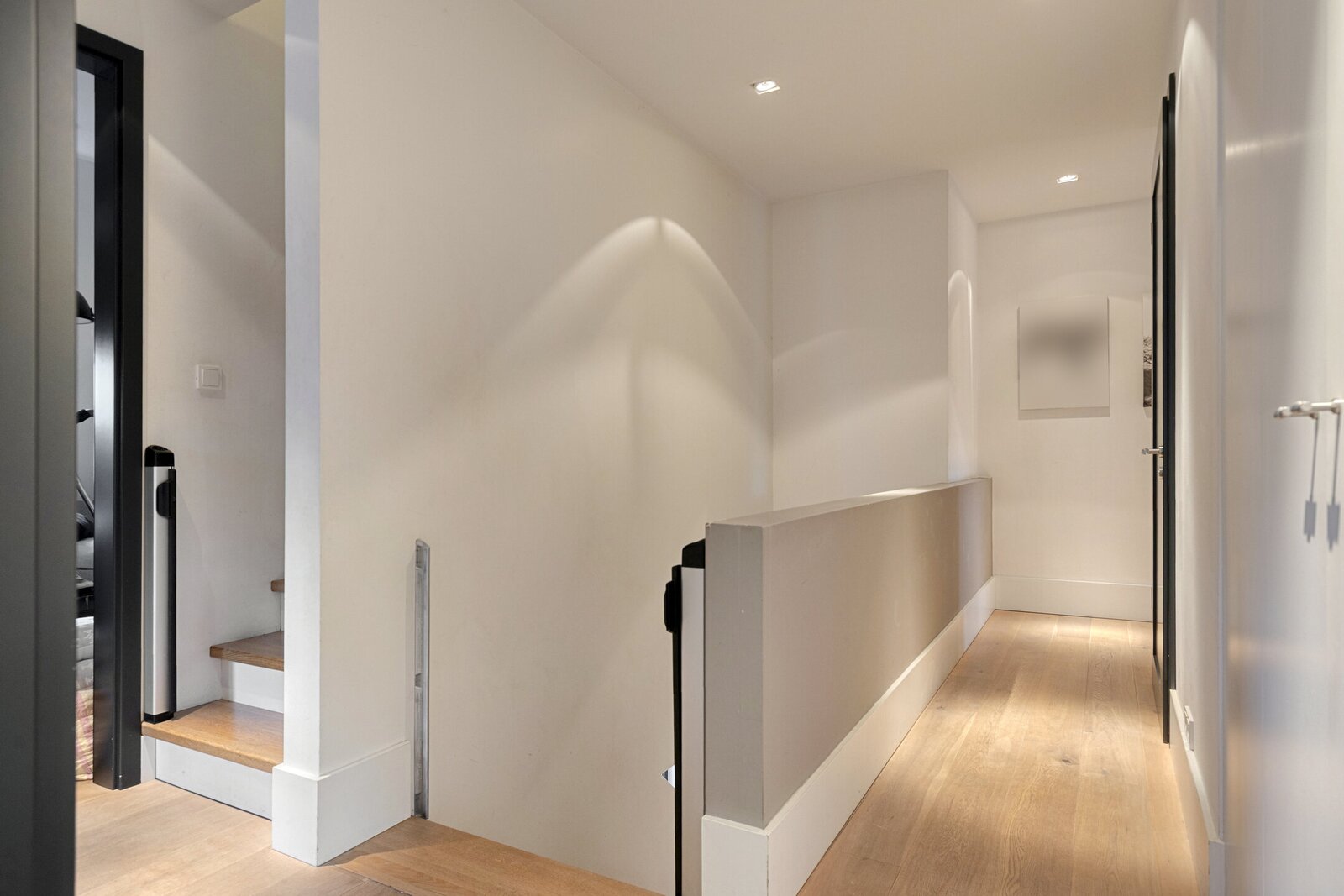 De ruime overloop biedt een mooie doorkijk naar de begane grond en is, net als beneden, afgewerkt met een fraaie houten vloer. Op deze verdieping bevinden zich vier ruime slaapkamers en twee badkamers.