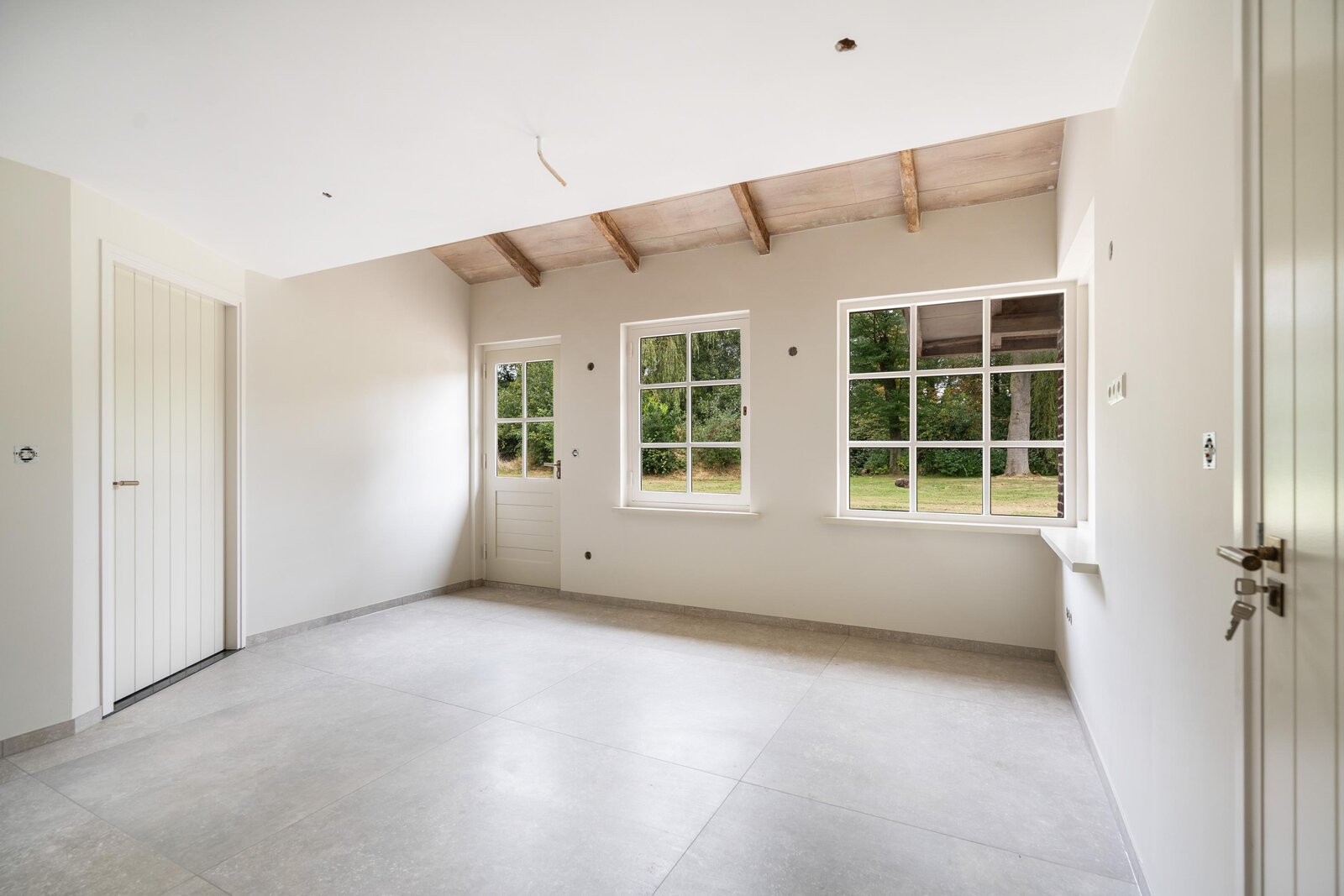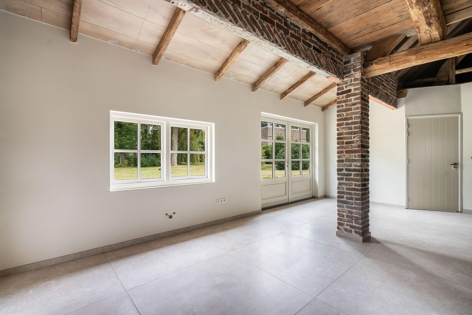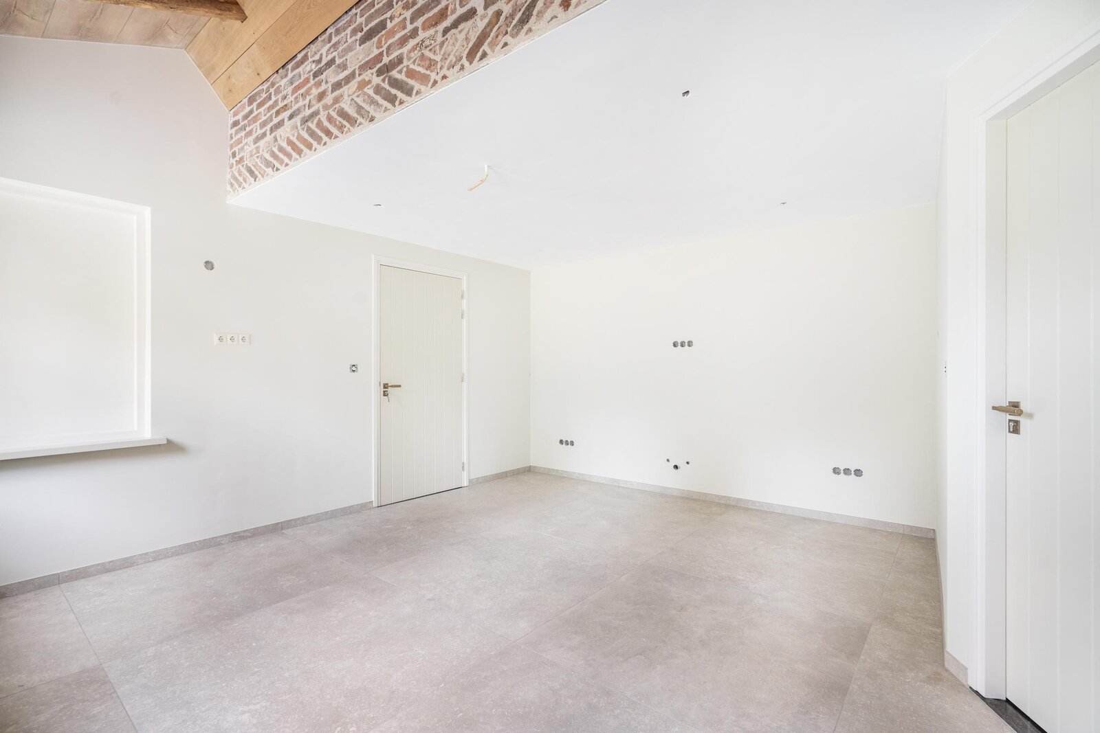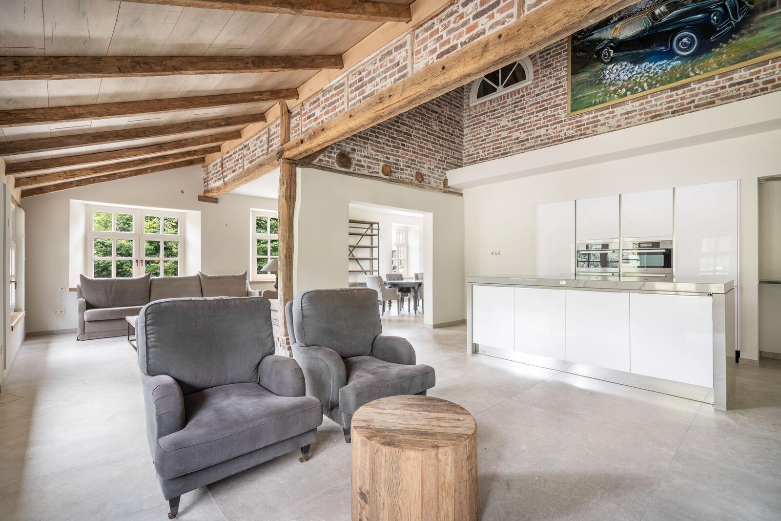 Het rechter gedeelte van de boerderij vormt het woonhart en biedt een royale entree met toegang tot de luxe keuken en de lichte woonkamer. De keuken is uitgerust met hoogwaardige Miele-apparatuur en beschikt over een bijzonder kookeiland dat met één handbeweging kan worden verplaatst en transformeert tot bar. De keuken is nagenoeg ongebruikt en vormt een echte blikvanger. Zowel de keuken als de woonkamer zijn voorzien van vloerverwarming en genieten van een prettige lichtinval. Op de verdieping bevindt zich momenteel een slaapkamer met eiken vloer en voorbereidingen voor een badkamer. De verdieping biedt daarnaast de mogelijkheid om, indien gewenst, twee extra slaapkamers te realiseren, waarmee het woonprogramma eenvoudig kan worden uitgebreid en aangepast aan de behoeften van een gezin of gecombineerd woon-werkgebruik. Daarnaast is dit gedeelte constructief voorbereid op het realiseren van een eigen trap of lift, wat bijdraagt aan toekomstbestendig gebruik.