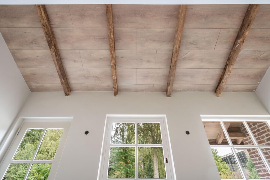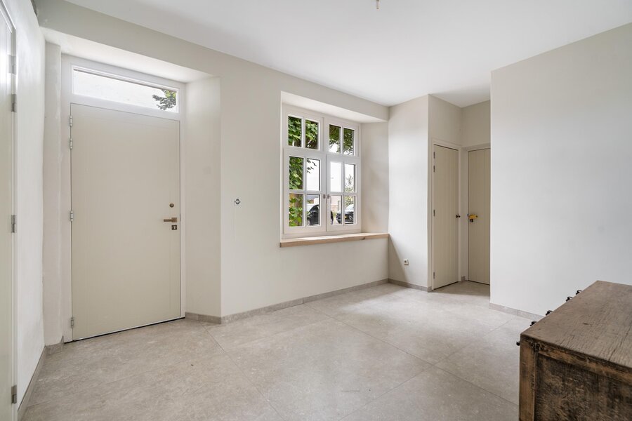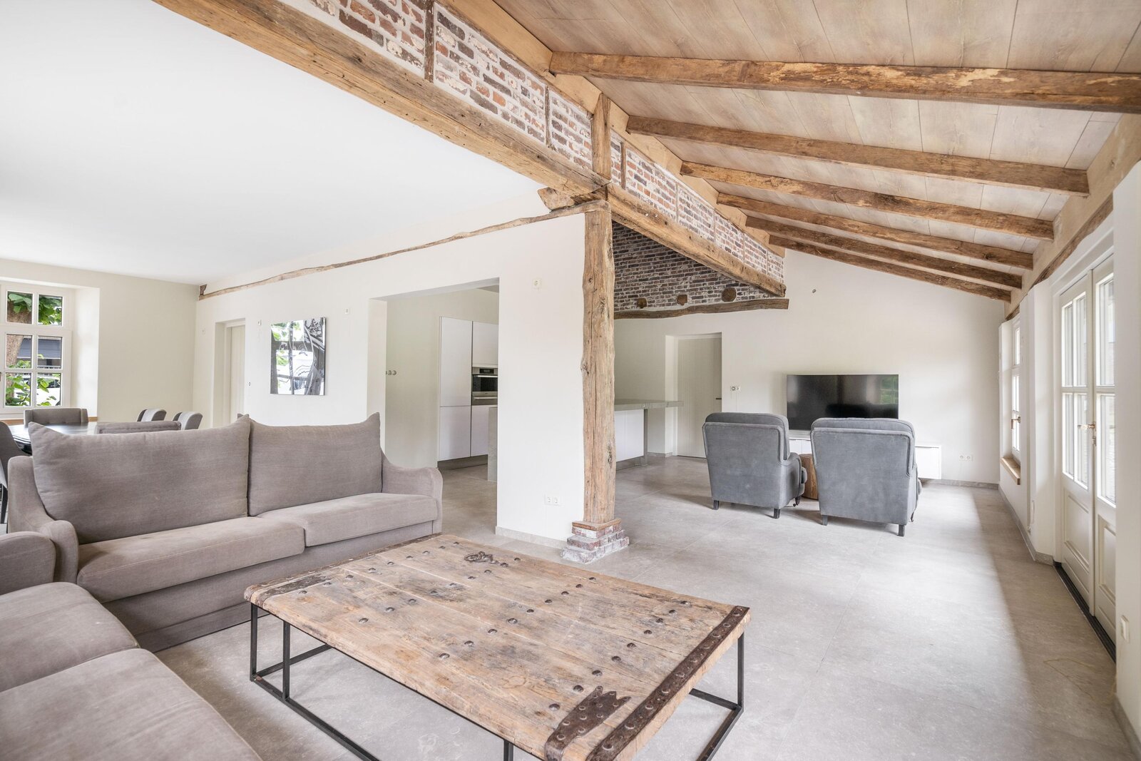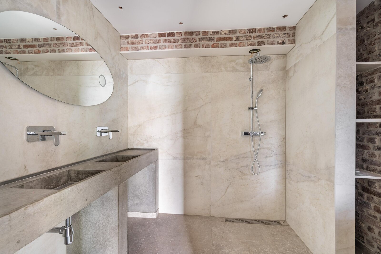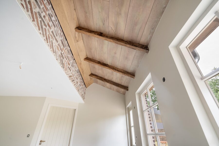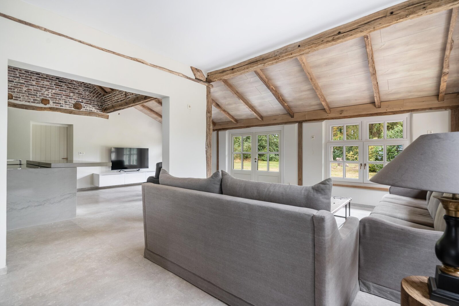 Het rechter gedeelte van de boerderij vormt het woonhart en biedt een royale entree met toegang tot de luxe keuken en de lichte woonkamer. De keuken is uitgerust met hoogwaardige Miele-apparatuur en beschikt over een bijzonder kookeiland dat met één handbeweging kan worden verplaatst en transformeert tot bar. De keuken is nagenoeg ongebruikt en vormt een echte blikvanger. Zowel de keuken als de woonkamer zijn voorzien van vloerverwarming en genieten van een prettige lichtinval. Op de verdieping bevindt zich momenteel een slaapkamer met eiken vloer en voorbereidingen voor een badkamer. De verdieping biedt daarnaast de mogelijkheid om, indien gewenst, twee extra slaapkamers te realiseren, waarmee het woonprogramma eenvoudig kan worden uitgebreid en aangepast aan de behoeften van een gezin of gecombineerd woon-werkgebruik. Daarnaast is dit gedeelte constructief voorbereid op het realiseren van een eigen trap of lift, wat bijdraagt aan toekomstbestendig gebruik.