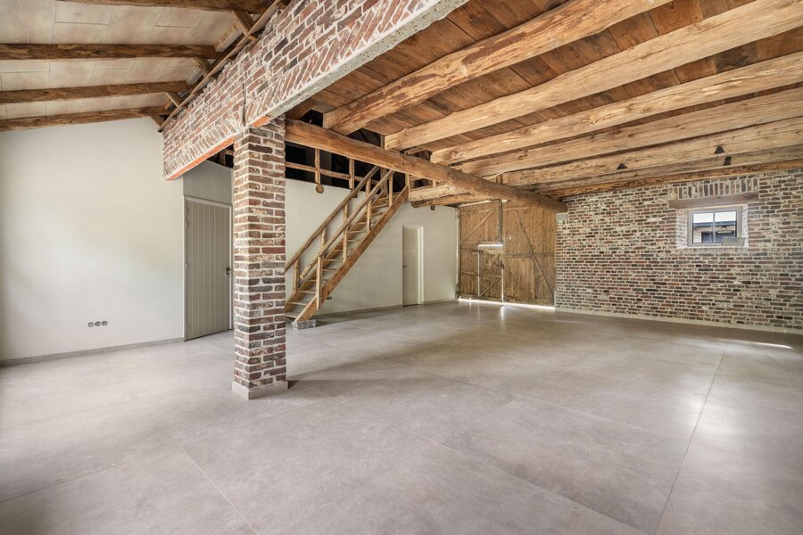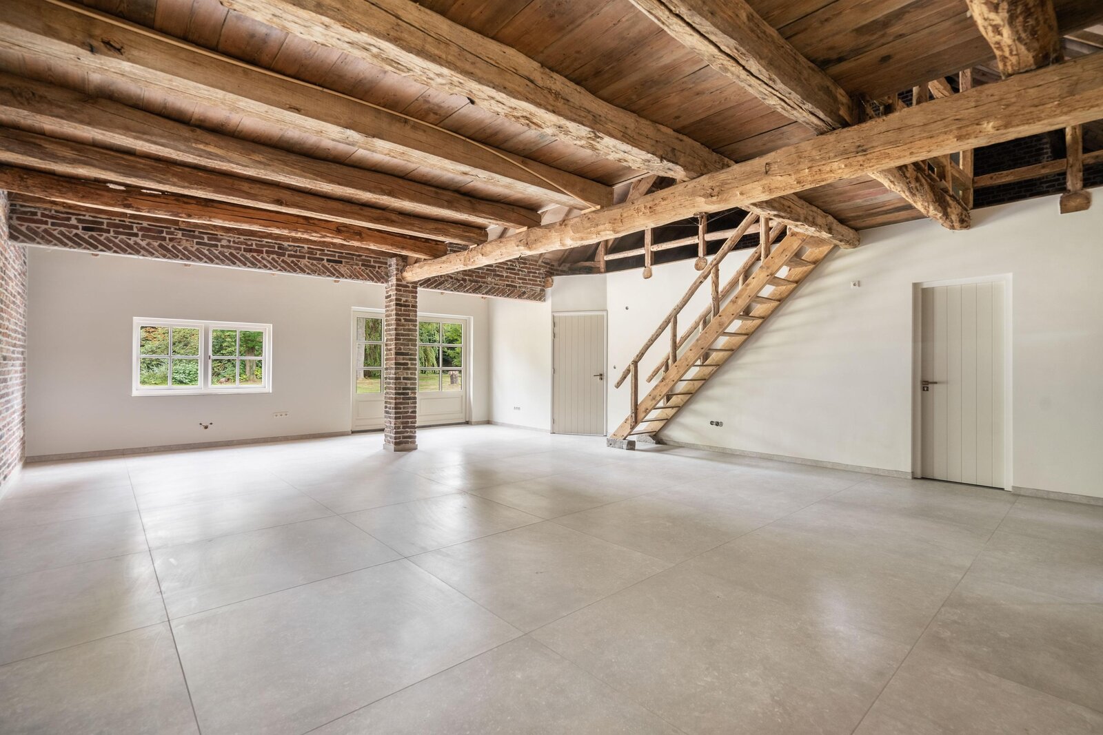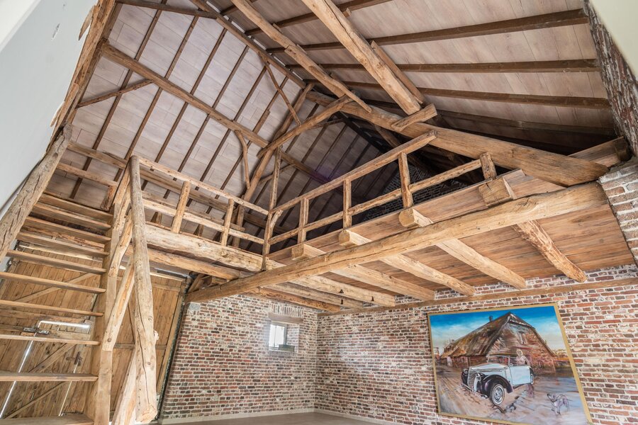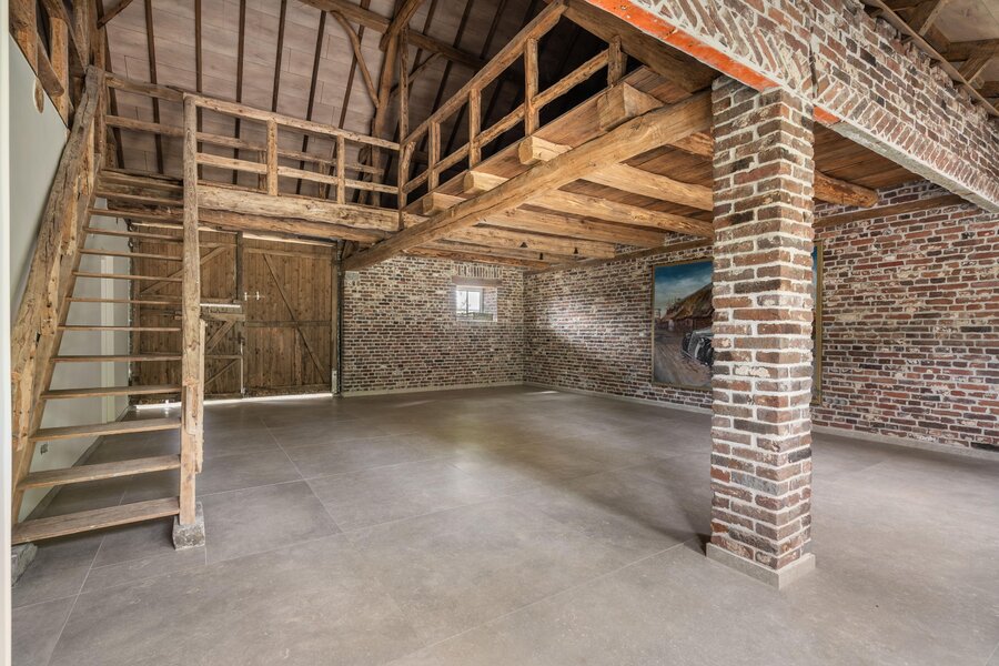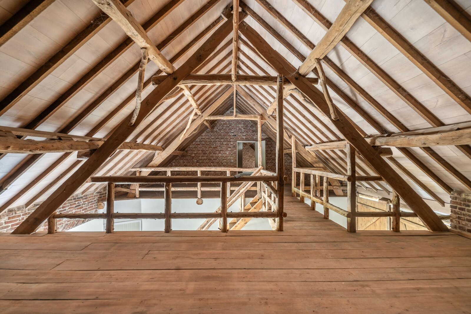 De boerderij is met zorg gerestaureerd en verkeert in uitstekende staat. Het object beschikt over een bedrijfswoning met bedrijfsruimte, geschikt voor bedrijven tot en met milieucategorie 3.1. De combinatie van hoogwaardige woonvoorzieningen en multifunctionele bedrijfsruimte maakt dit een uiterst waardevol en veelzijdig geheel. Het linker gedeelte van de boerderij is ingericht als een royale multifunctionele ruimte en leent zich uitstekend voor gebruik als bedrijfsruimte, atelier, showroom, opslag of garage voor meerdere voertuigen. Alle noodzakelijke voorzieningen zijn aanwezig, waaronder water-, gas- en elektravoorzieningen. De ruimte is voorzien van vloerverwarming, goede isolatie en een verzorgde afwerking. Het zichtbare originele eiken spantwerk zorgt voor een indrukwekkende, karaktervolle uitstraling. Op de verdieping bevinden zich twee open ruimtes die flexibel inzetbaar zijn, bijvoorbeeld als kantoor, werkruimte, archief of hobbyruimte. De combinatie van grenen en eiken vloeren, veel daglicht en originele balken geeft deze verdieping een warme en authentieke sfeer.