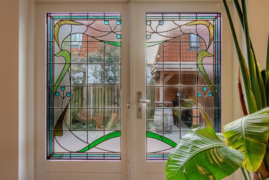 -Openslaande deuren naar tuin, romantisch glas-in-lood