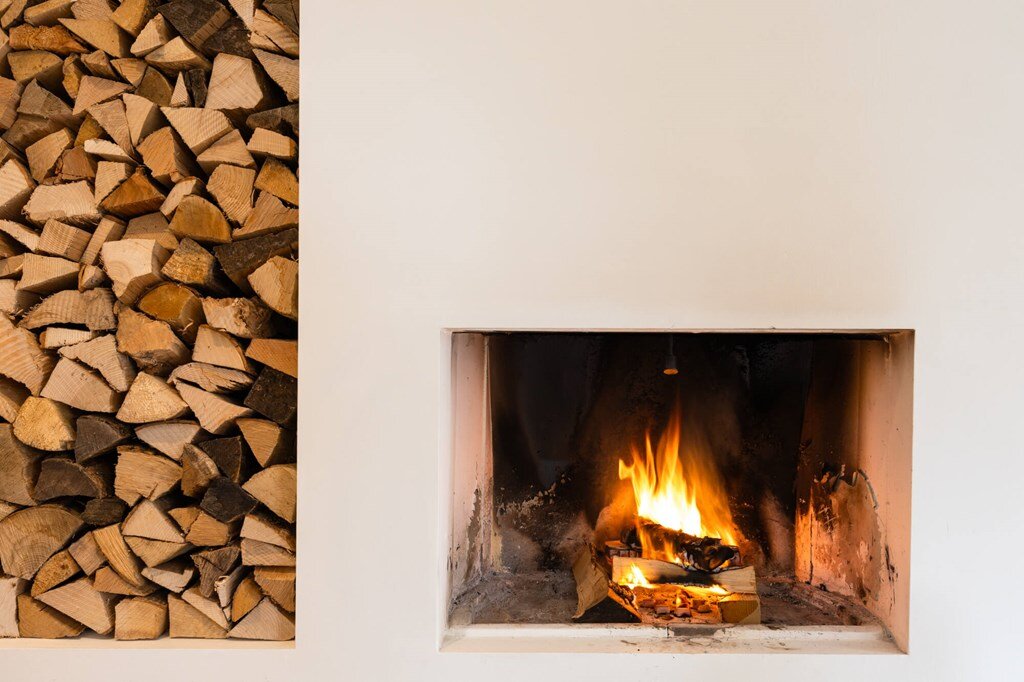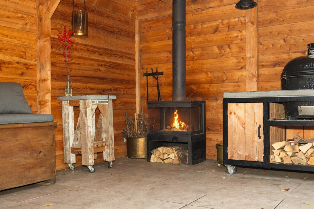 -Veranda voorzien van een moderne vrijstaande houtkachel met triple glas voor panoramisch vuurzicht en twee heaters