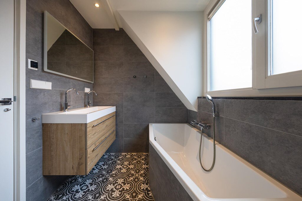 Beide badkamers zijn voorzien van vloerverwarming en uitgevoerd in warme, natuurlijke tinten. Afgewerkt met tegels in natuursteenlook, ademen ze direct een luxe en rustgevende sfeer uit.