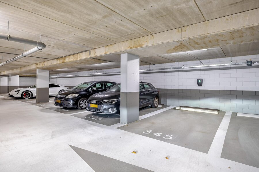 Bij het appartement hoort een externe berging van ca. 6 m², ideaal voor fietsen, seizoensopslag of gereedschap. Parkeren doe je op je eigen parkeerplek in de ondergelegen parkeergarage. Jouw eigen parkeerplek beschikt ook nog eens over een oplaadpunt. Tevens is er een gezamenlijke fietsenberging in een afgesloten fietsenkelder.