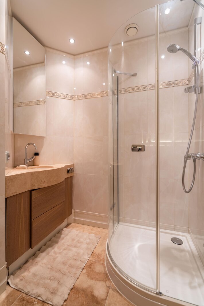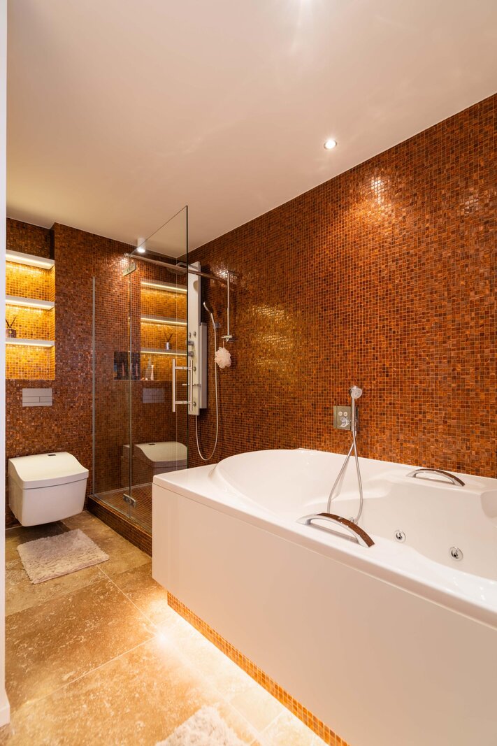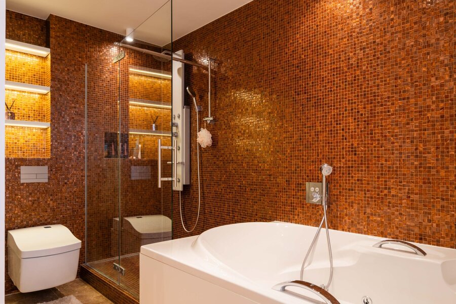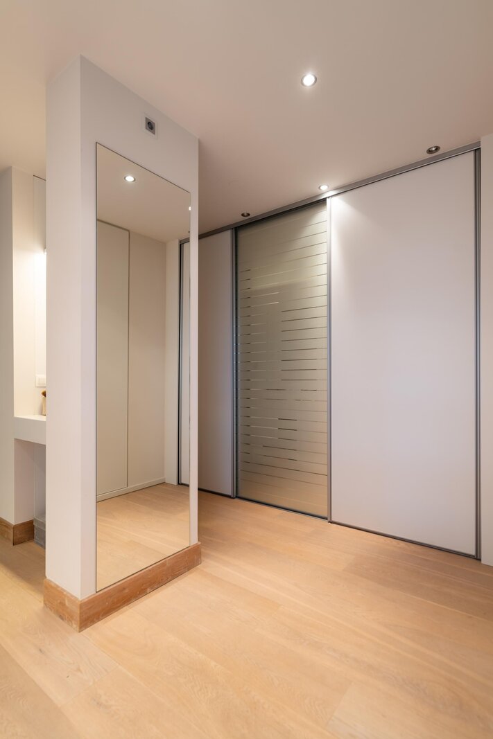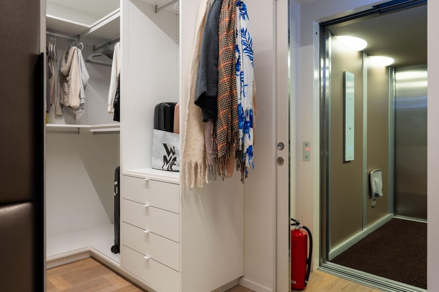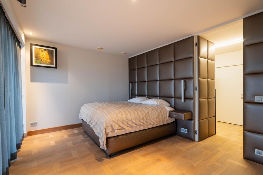 In totaal beschikt het penthouse over twee riante slaapkamers, met de mogelijkheid tot een derde, elk voorzien van praktische kleedruimtes. Daarnaast telt de woning drie bijzonder luxe badkamers, afgewerkt met hoogwaardige materialen.