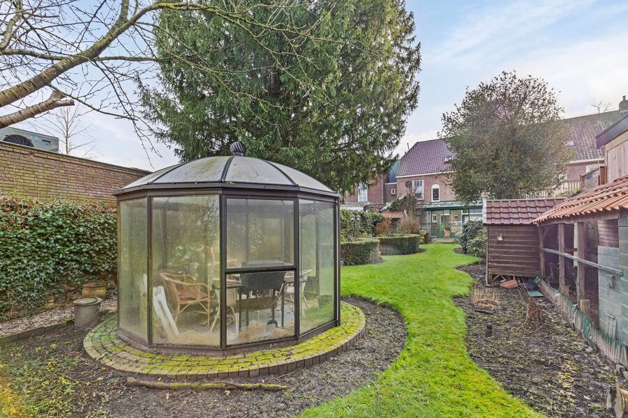 Langs de zijkant van de tuin bevinden zich nog een extra tuinberging en volière. De tuin biedt tevens een achterom en is volledig omsloten zodat u verzekerd bent van privacy.