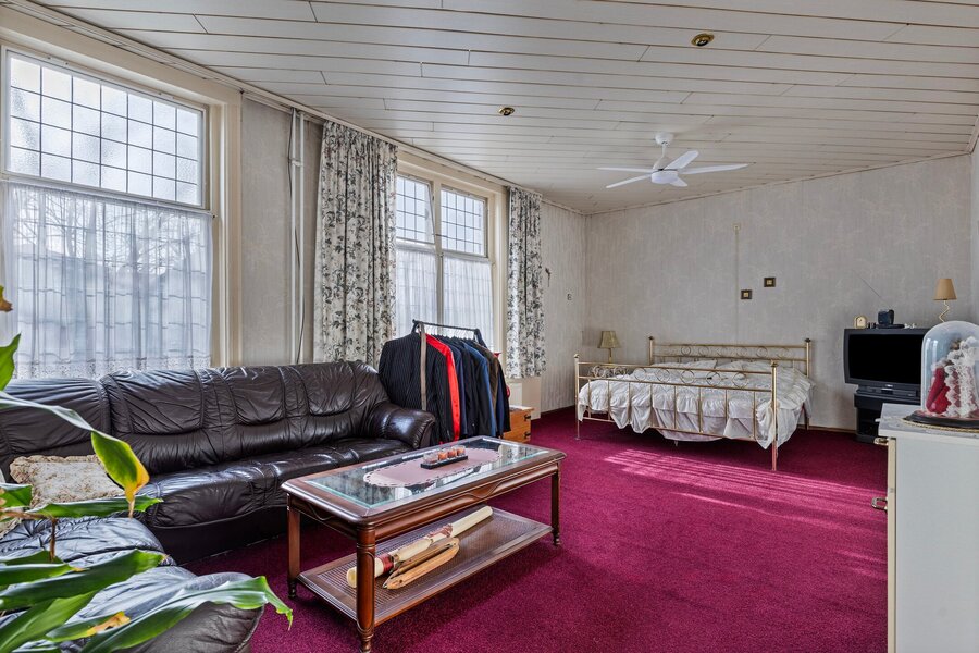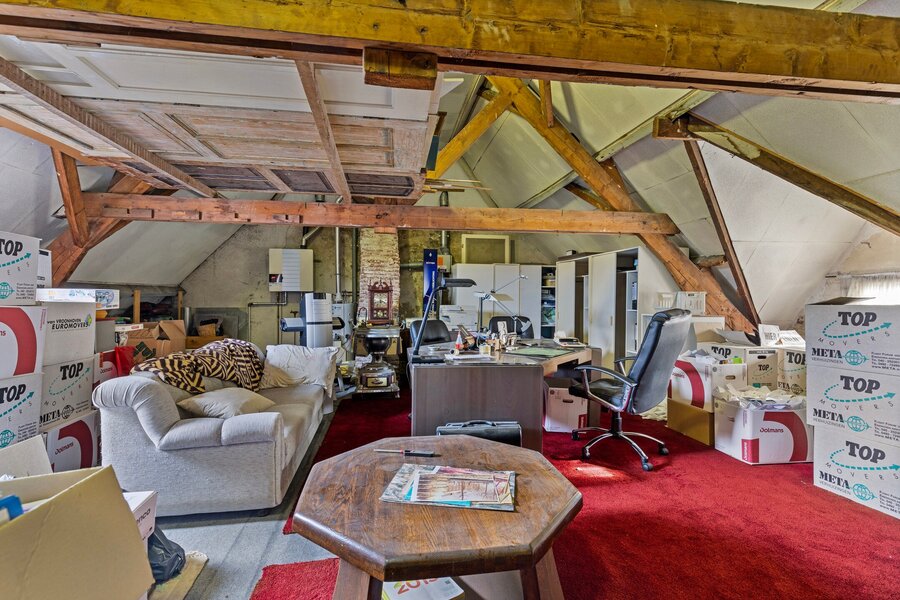 Via een vaste trap bereikt u de indrukwekkende zolderruimte met authentieke houten balken en een zee aan mogelijkheden, denk bijvoorbeeld aan een atelier, extra slaapkamer of een ontspanningsruimte. Met de juiste inrichting en afwerking kan deze verdieping een unieke en waardevolle toevoeging zijn aan deze woning.
