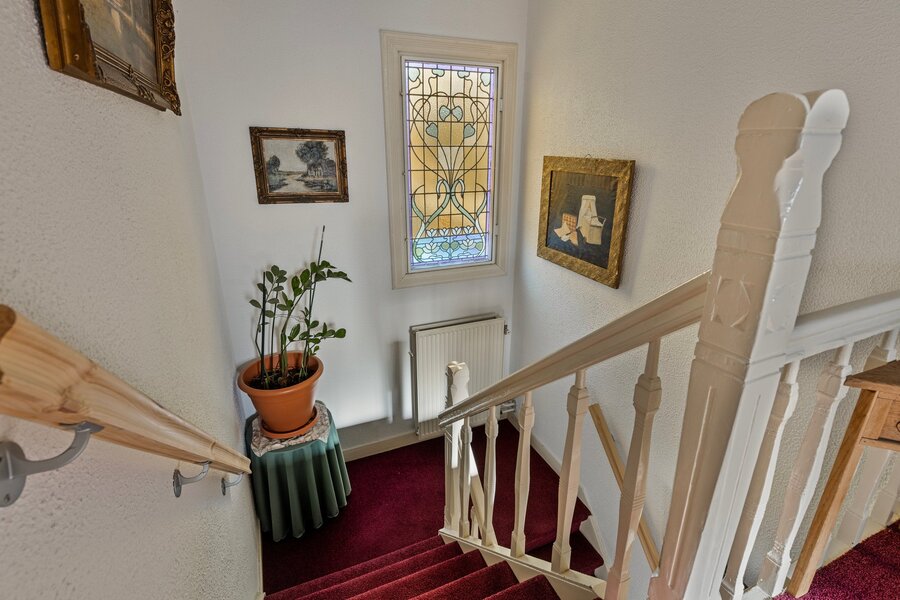 Ook de eerste en tweede verdieping met royale slaapkamers, een ruime badkamer en een multifunctionele zolder bieden een combinatie van authentieke details, glas-in-loodramen en veel ruimte. Dit maakt het een ideale gezinswoning met volop mogelijkheden.