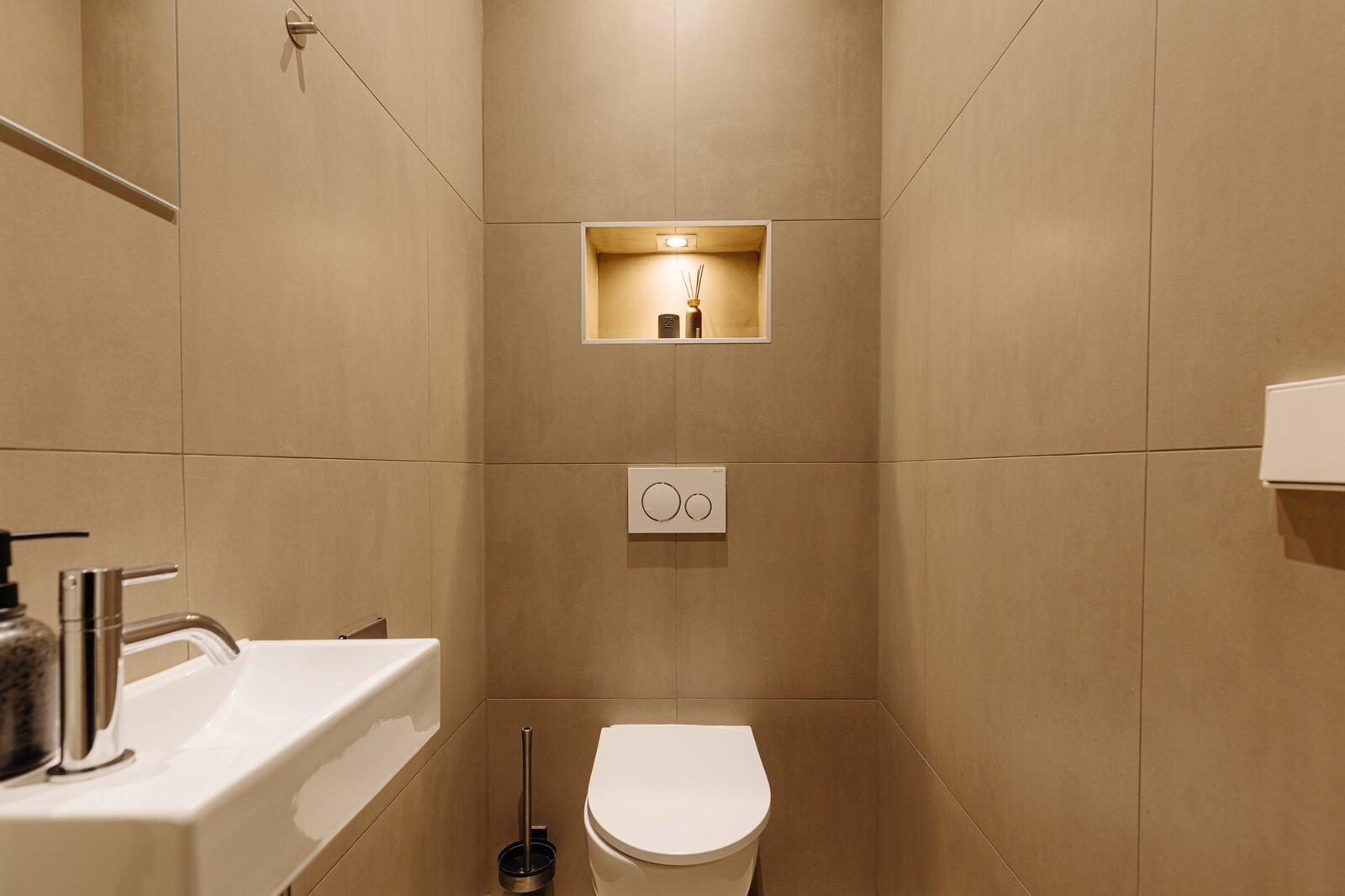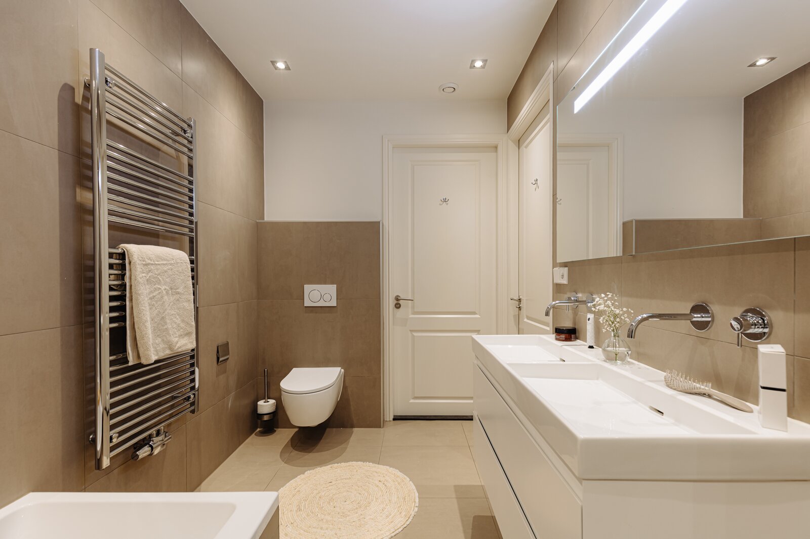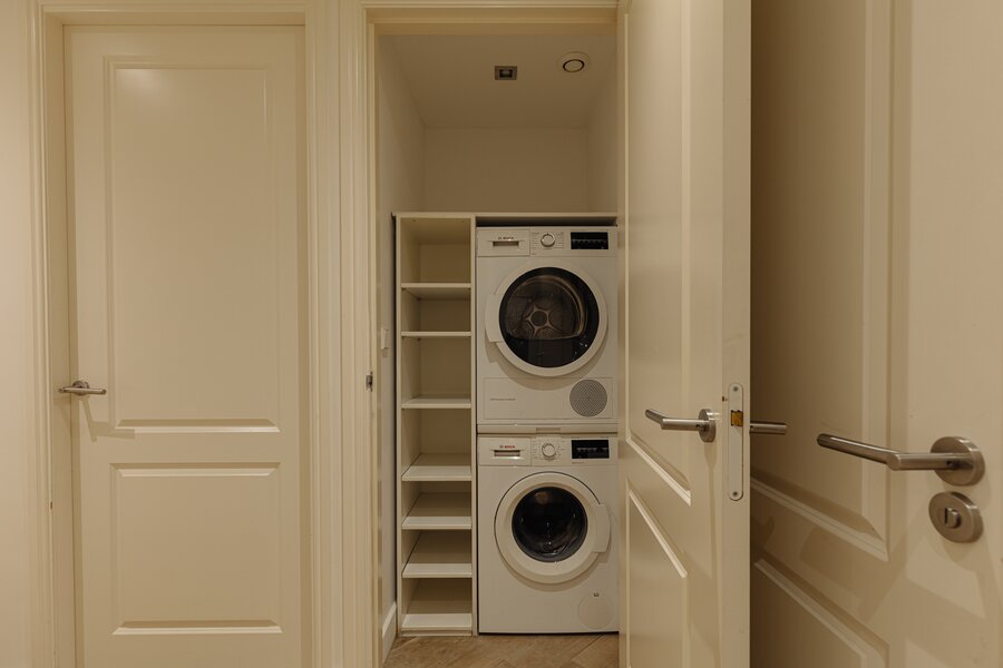 Centraal op deze verdieping bevindt zich de luxe badkamer, voorzien van een comfortabel ligbad, ruime inloopdouche, dubbel wastafelmeubel en wc. Daarnaast is er een separate berging met aansluitingen voor wasmachine en droger.