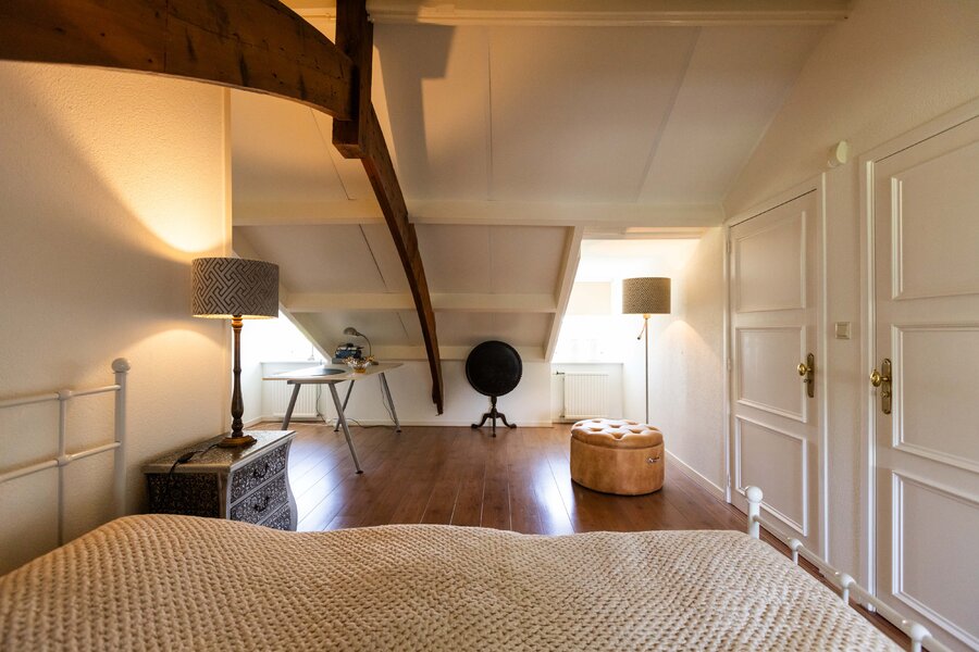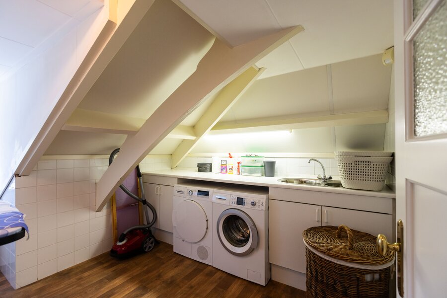 De 2e verdieping is via een vaste trap bereikbaar. Op deze verdieping is er een wasruimte, de stookruimte, veel bergruimte en een grote 4e slaapkamer. Er is tevens een 3e toilet en een wastafelmeubel op deze verdieping.