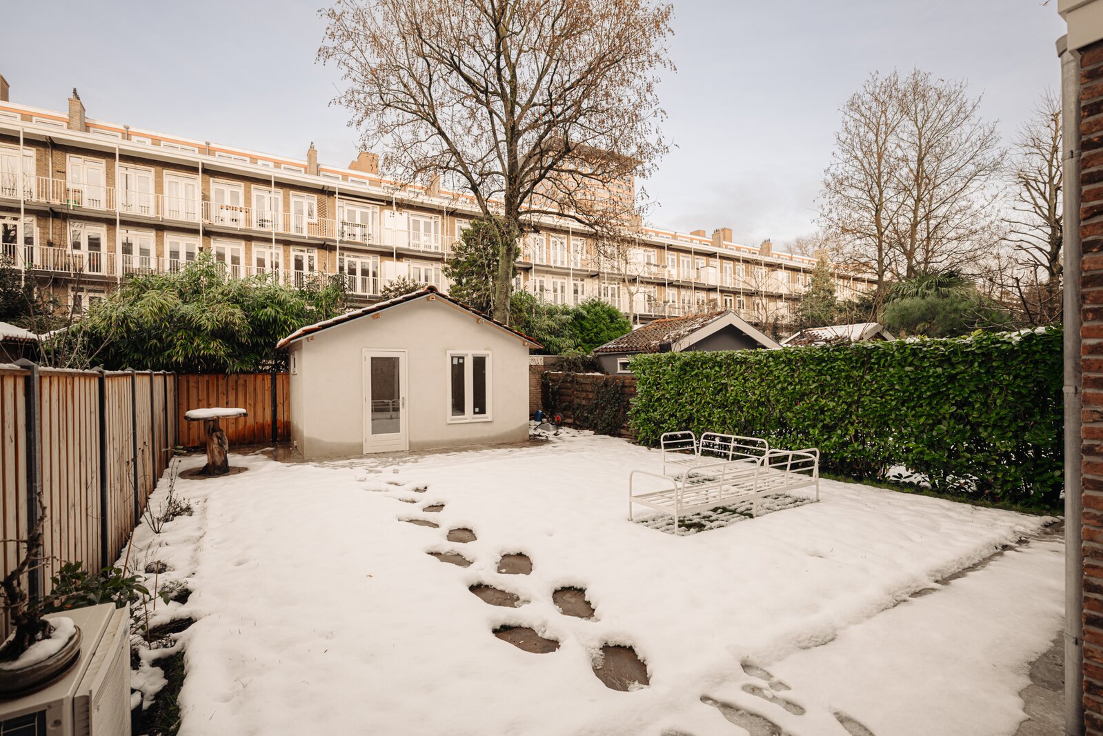In het hart van de geliefde Rivierenbuurt is dit hoogwaardig gerenoveerde benedenhuis (woonoppervlakte 144m² NEN gemeten) te koop. Het huis heeft een unieke, zonnige tuin van ruim 119m², met een tuinhuis die bijv. gebruikt kan worden als gastenverblijf of kantoor. De ligging is bijzonder aantrekkelijk: centraal in Amsterdam Zuid, om de hoek van de Scheldestraat, Maasstraat en De Pijp, met alle voorzieningen binnen handbereik.