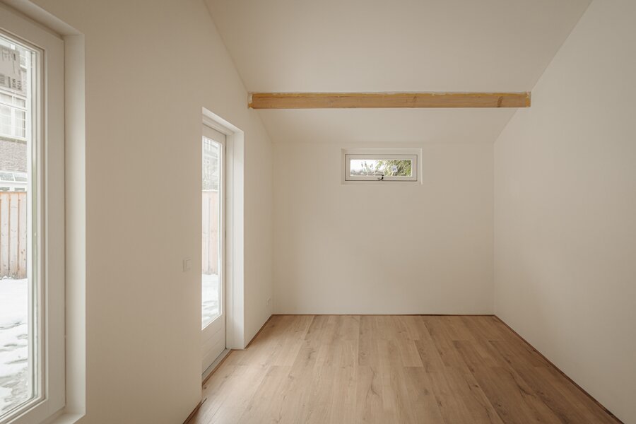 Achterin de tuin bevindt zich het bijgebouw van 14m², voorzien van verwarming en elektra. Dit biedt uitstekende mogelijkheden voor een gastenverblijf, atelier of separate werkruimte.