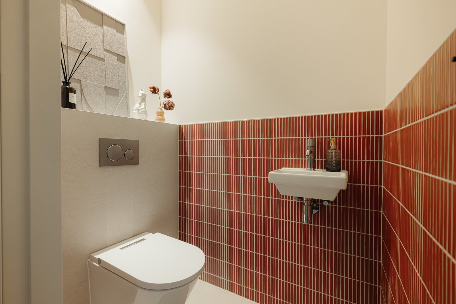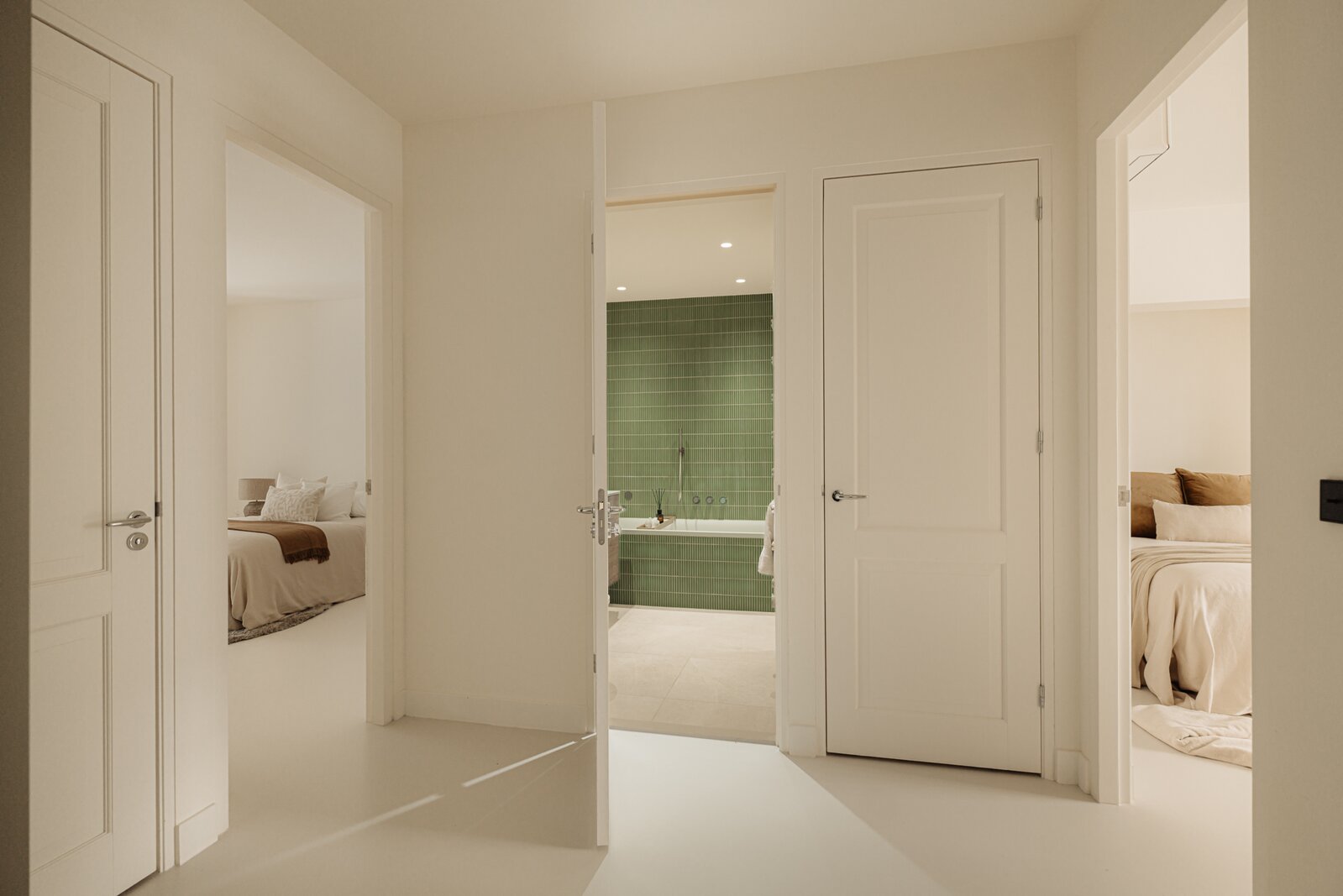 Aan de voor- en achterzijde zijn drie ruime slaapkamers gesitueerd, waarvan één toegang heeft tot de tuin. De luxueuze badkamer ligt centraal en is uitgerust met een ligbad, een inloopdouche, wastafel en een wc. Tevens is er een separate gasten wc.