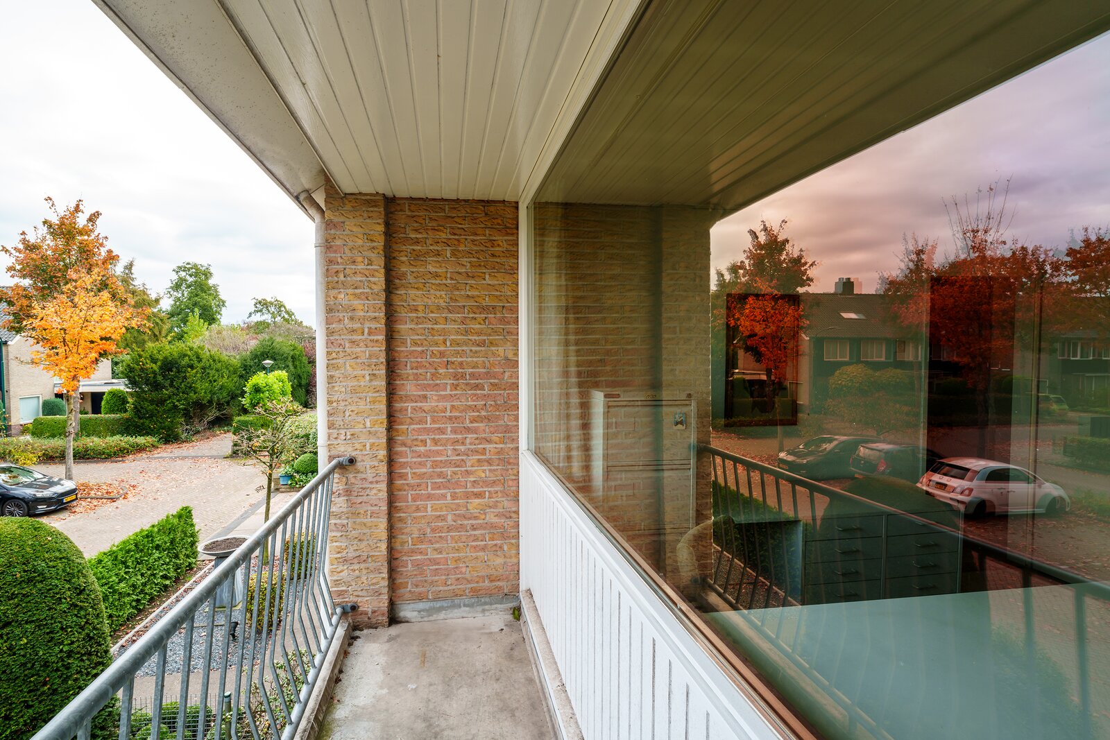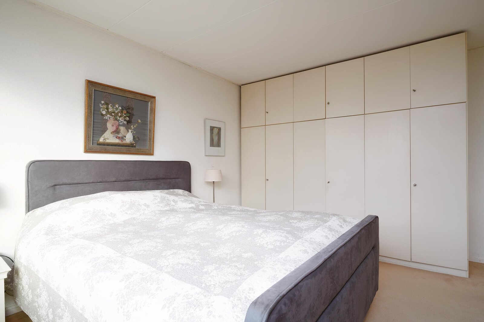 Overloop met toegang tot drie slaapkamers. De ruime ouderslaapkamer beschikt over een vaste kastenwand. De tweede slaapkamer heeft eveneens een vaste kast en een deur naar het overdekte balkon. De derde kamer is ideaal als kinder- of werkkamer. De moderne badkamer is uitgerust met een inloopdouche, dubbele wastafel met meubel en handdoekenradiator. Het toilet is separaat op de overloop.