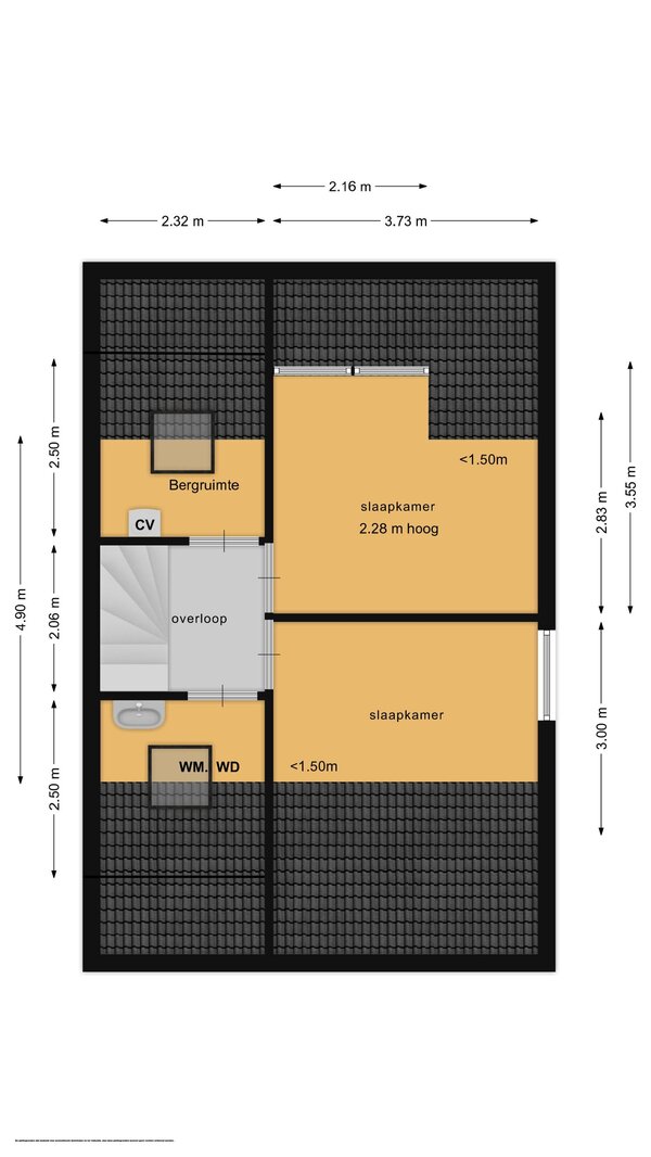 Via een vaste trap bereikt u de tweede verdieping met overloop, bergkast met c.v.-opstelling, een vierde ruime slaapkamer met dakkapel, een vijfde slaapkamer en een aparte waskamer met aansluiting voor wasmachine, droger en wastafel.