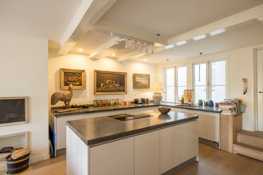 - Royale woonkeuken en grote woonkamer met uniek hoog plafond en overvloedige lichtinval