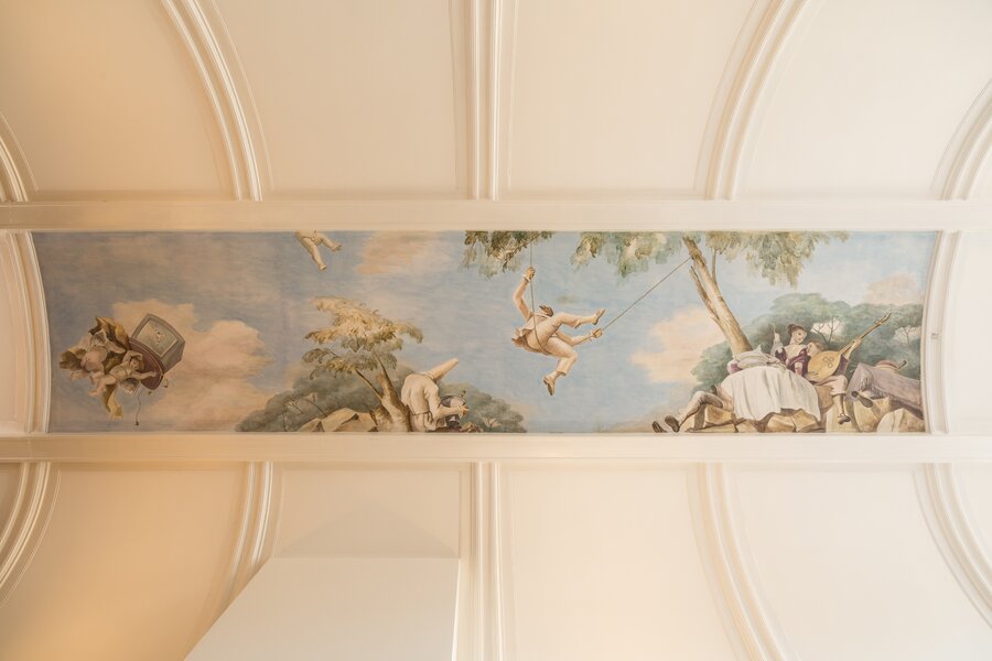 On the fourth floor, there is a spacious bedroom with built-in wardrobes and a dressing area. The open mezzanine gives this level an exceptional sense of space and creates a strong visual connection to the fifth floor above. Here you will find a very generous bathroom, featuring a beautiful double walk-in shower with a large skylight, allowing you to quite literally shower in the sunlight, as well as a separate toilet and a second dressing area.