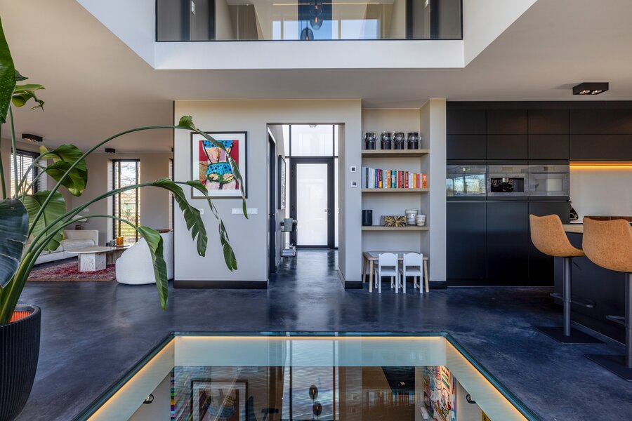 In 2022 gerealiseerd, doordachte architectuur met plafondhoge raampartijen, lange zichtlijnen en een indrukwekkende vide die zorgt voor een uitzonderlijk lichte en ruimtelijke woonbeleving.