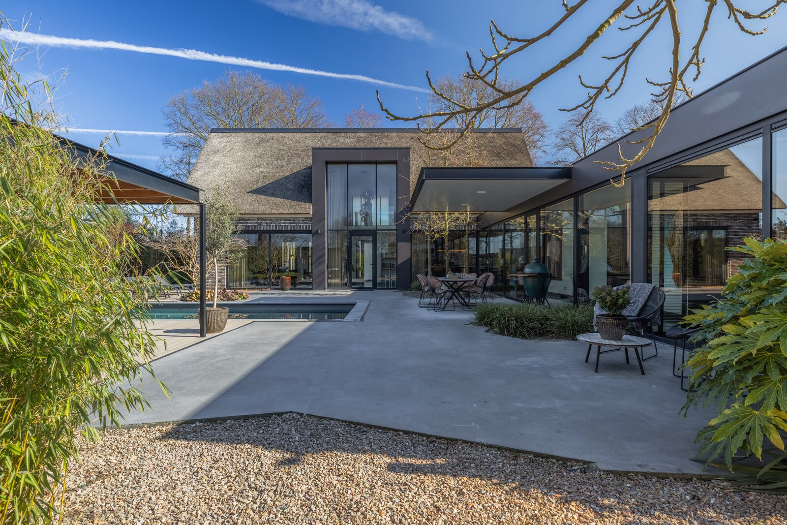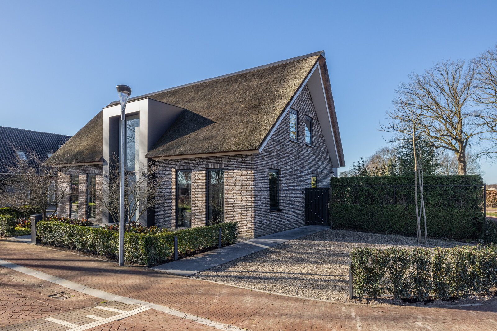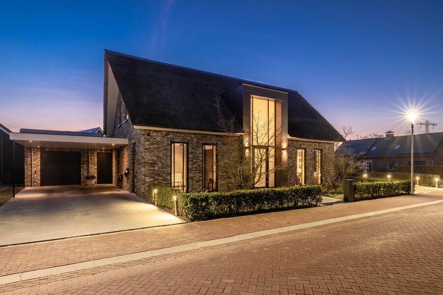 Bij de bouw van deze villa is nadrukkelijk gekozen voor duurzame materialen en energiezuinige technieken. De woning beschikt over een hoogwaardig isolatiepakket, onderhoudsarme aluminium kozijnen met HR++ beglazing en een karakteristieke rieten kap met extra geïsoleerde dakplaten. Dit draagt bij aan een aangenaam binnenklimaat en lage energielasten.
