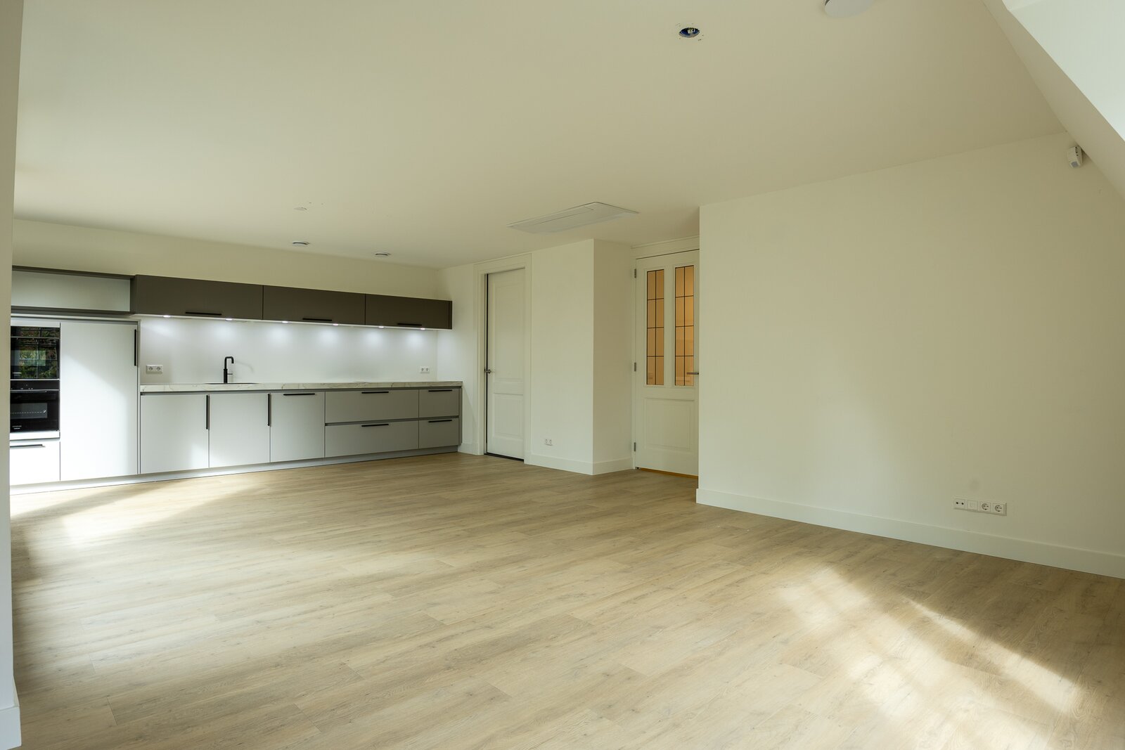 Open luxe keuken voorzien diverse inbouwapparatuur, te weten: een 4-pits inductiekookplaat met afzuiging, Quooker, magnetron, oven en vaatwasser. Direct naast de keuken ligt een aparte berging die een zeer functionele aanvulling is op de keuken. Hierin bevinden zich de warmtepomp, aansluiting was-apparatuur en WTW-unit.