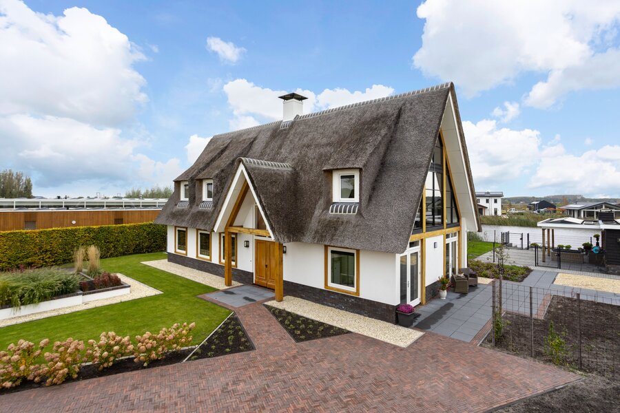Op een schitterende plek aan de oevers van het Oldambtmeer staat deze riante en luxe, rietgedekte villa. De woning kenmerkt zich door de open indeling, weidse uitzichten en hoogwaardige afwerking. Ze beschikt over drie ruime slaapkamers, twee badkamers, een heerlijk terras met buitenhaard, een eigen insteekhaven en een groot tuinhuis met keuken, overkapping, garage en terras aan het water.