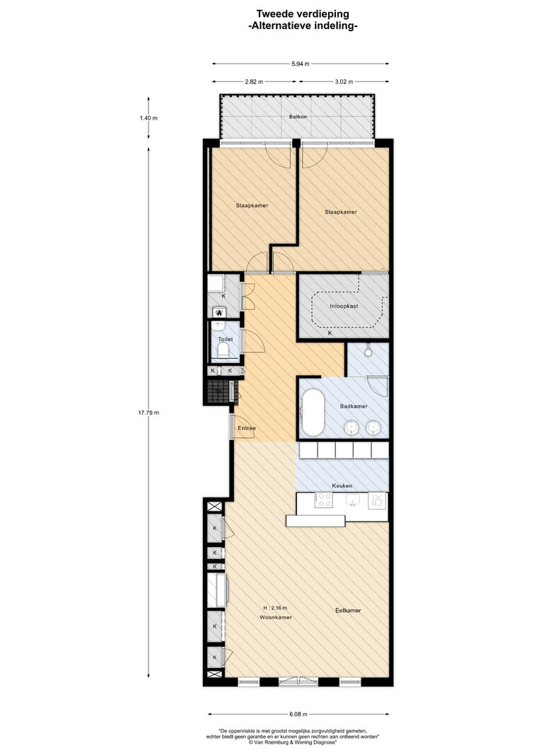 Thans beschikt de woning over 1 slaapkamer. De mogelijkheid bestaat om deze kamer in tweeën te delen, hier is destijds al rekening mee gehouden met de indeling. Zie hiervoor de optietekening die is toegevoegd. Ook is er in de akte van splitsing opgenomen dat het is toegestaan om een balkon aan de achterzijde te plaatsen van niet dieper dan 1.4 m. Op bijgevoegde optietekening is dit inzichtelijk gemaakt. Een en ander onder opschortende voorwaarden van het verkrijgen van een omgevingsvergunning.
