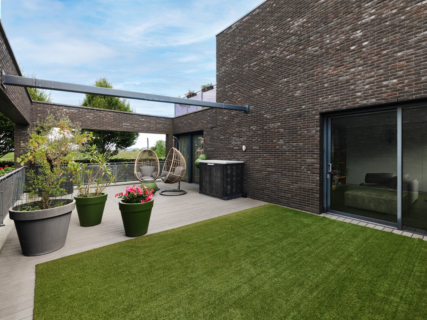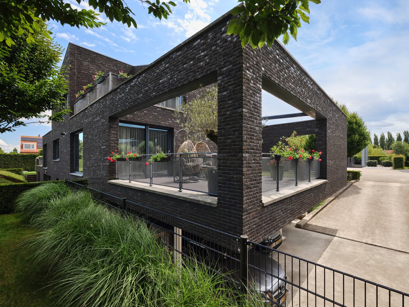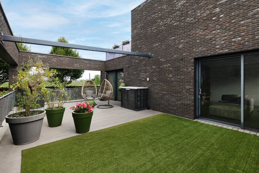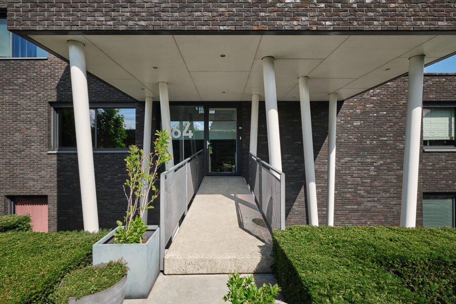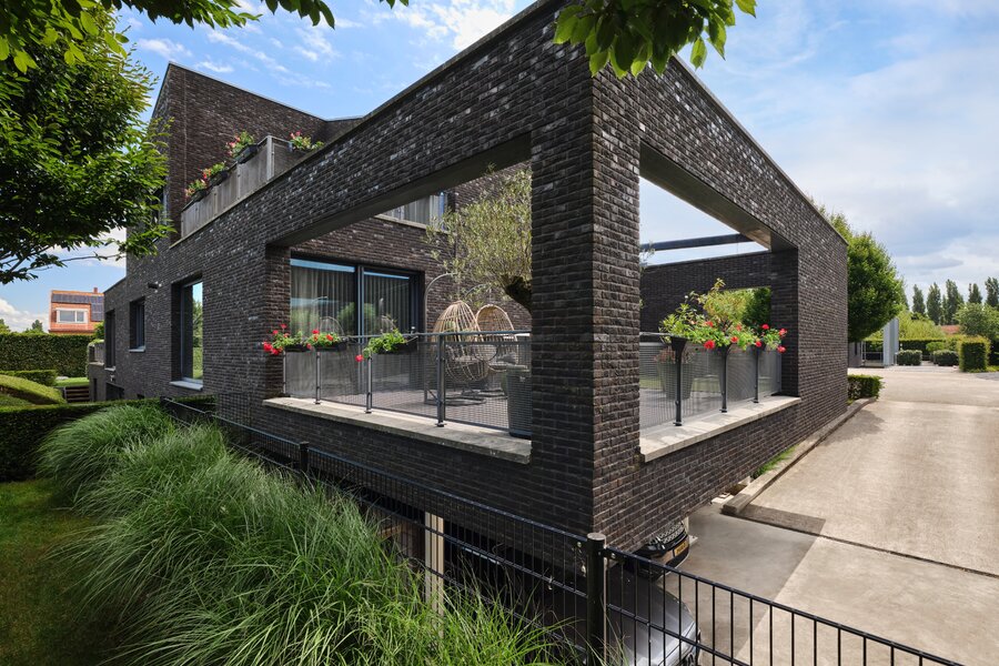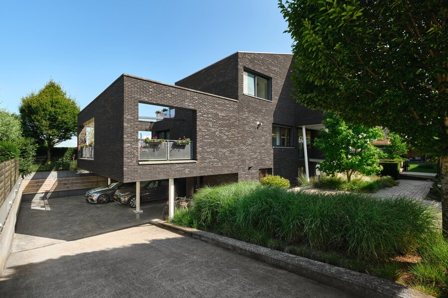 Voor de garage, onder het terras kan je twee auto’s overdekt parkeren en is er ook voldoende ruimte voor het stallen van de fietsen.