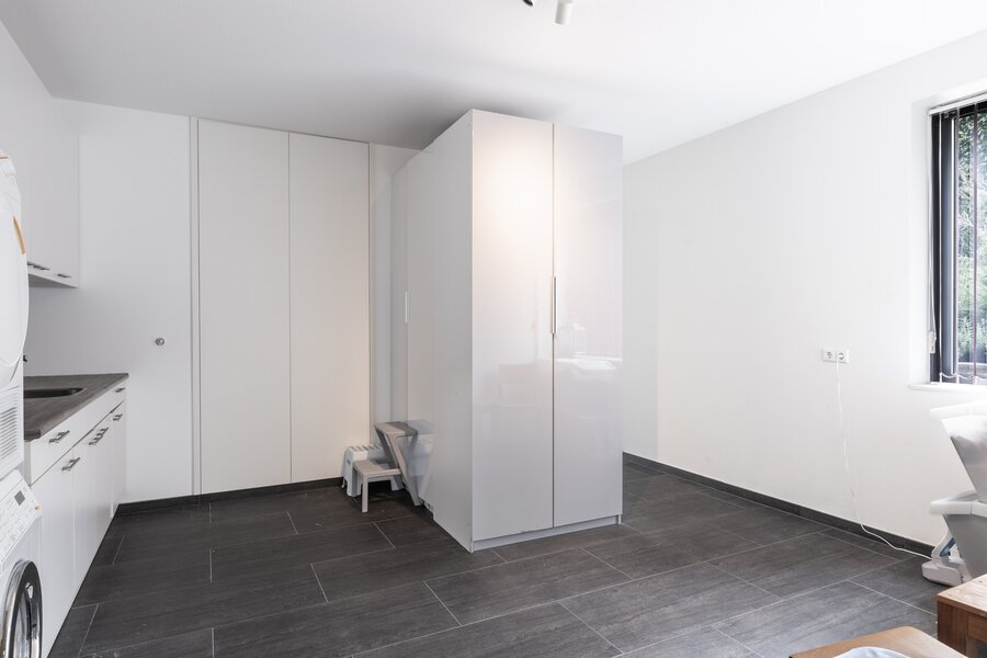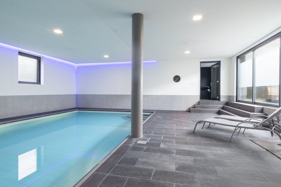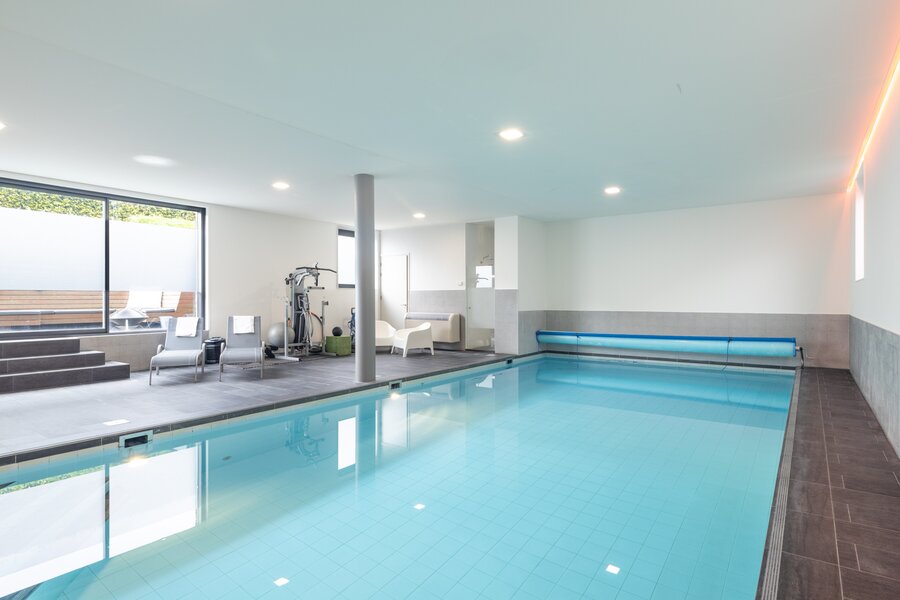 Het zwembad is één van de meest bijzondere plekken in het huis. Genieten met een hoofdletter G is hier zeker van toepassing. Dit is een binnenzwembad van groot formaat, dus flink baantjes trekken gaat lukken. Ook met familie of vrienden ontspannen is op deze plek natuurlijk ideaal. De enorme schuifpui naar het terras en de tuin maakt dat je ook binnen en buiten deze plek met elkaar kan verbinden. Even de frisse lucht of wat zon pakken, alles is mogelijk. Bij het zwembad is zelfs een douche! Onder het zwembad vind je de technische ruimte en de kelder.