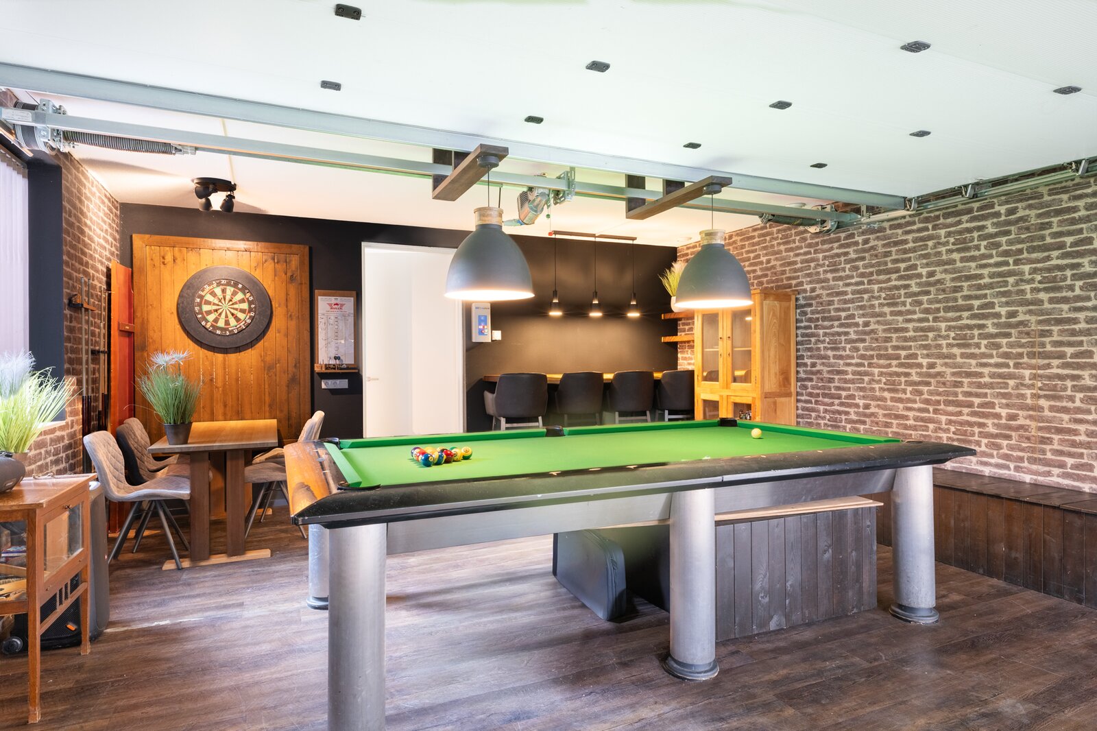 Onder dit unieke woonhuis vind je nog een hele riante woonlaag en uiteraard het fantastische zwembad met alles wat daarbij hoort. De inpandige grote garage is op dit moment ingericht als poolkamer met sport en ontspanning, maar eenvoudig weer in gebruik te nemen als garage.