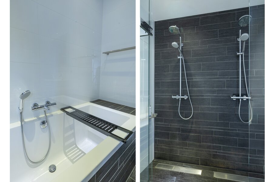 Via de prachtige trapopgang kom je op de overloop met toegang tot de 5 slaapkamers. De vier slaapkamers aan weerszijden zijn gelijk qua afmeting, een goede verdeling en er is een separate badkamer voorzien van een ligbad, een wastafelmeubel met spiegel en een dubbele inloopdouche, voor twee personen. Aan de voorzijde vind je de royale hoofdslaapkamer met het allermooiste uitzicht en toegang tot het bijbehorende balkon. Hier ontwaak je ’s ochtends in alle rust, voordat je gaat zwemmen. Er is een walk-in-closet met genoeg ruimte voor kleding en schoenen, een vaste kast, een separaat toilet en een eigen badkamer voorzien van een dubbele wastafelmeubel met bijpassende spiegel en een inloopdouche met rainshower. Via de overloop kom je bij de aparte was- en strijkkamer, met genoeg bergruimte.