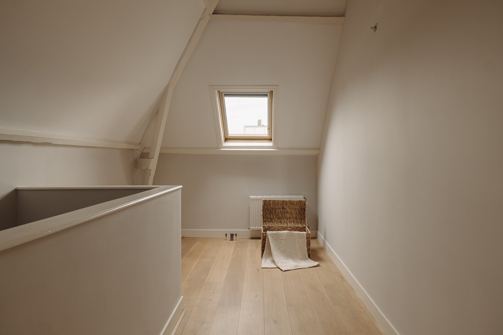 Gemeenschappelijke entree, trap naar de eerste verdieping. Eigen voordeur met opgang naar de tweede verdieping. Ruime hal met trap naar de bovenste etage, veel vaste kasten met opbergruimte, een aparte wc en deur naar de royale leefruimte. Bij binnenkomst valt direct de hoeveelheid licht op die het appartement binnen treedt. Aan de voorzijde gelegen bevindt zich de goed uitgeruste keuken met diverse inbouwapparatuur. De achterzijde heeft volop ruimte om een sfeervolle living en (thuis) werkplek te creëren. Openslaande deuren naar het balkon van ca. 10 m² met vrij uitzicht en ligging op het westen, hier is het heerlijk genieten van de middag en avondzon.