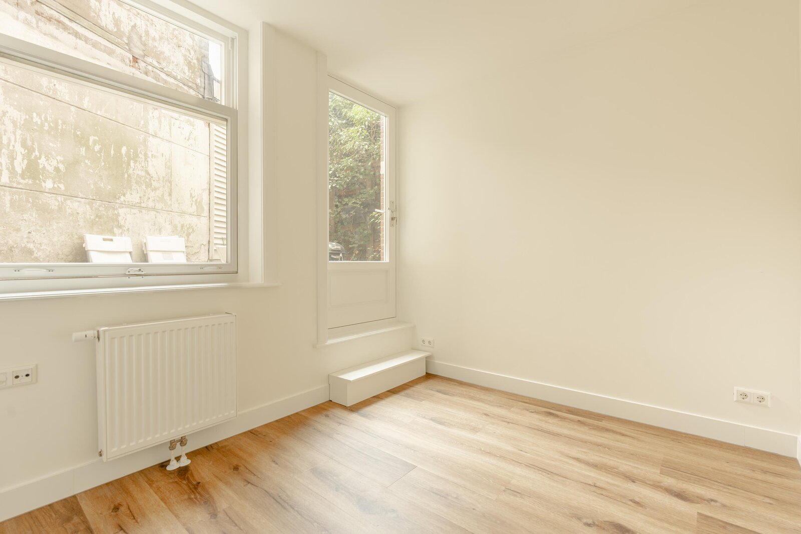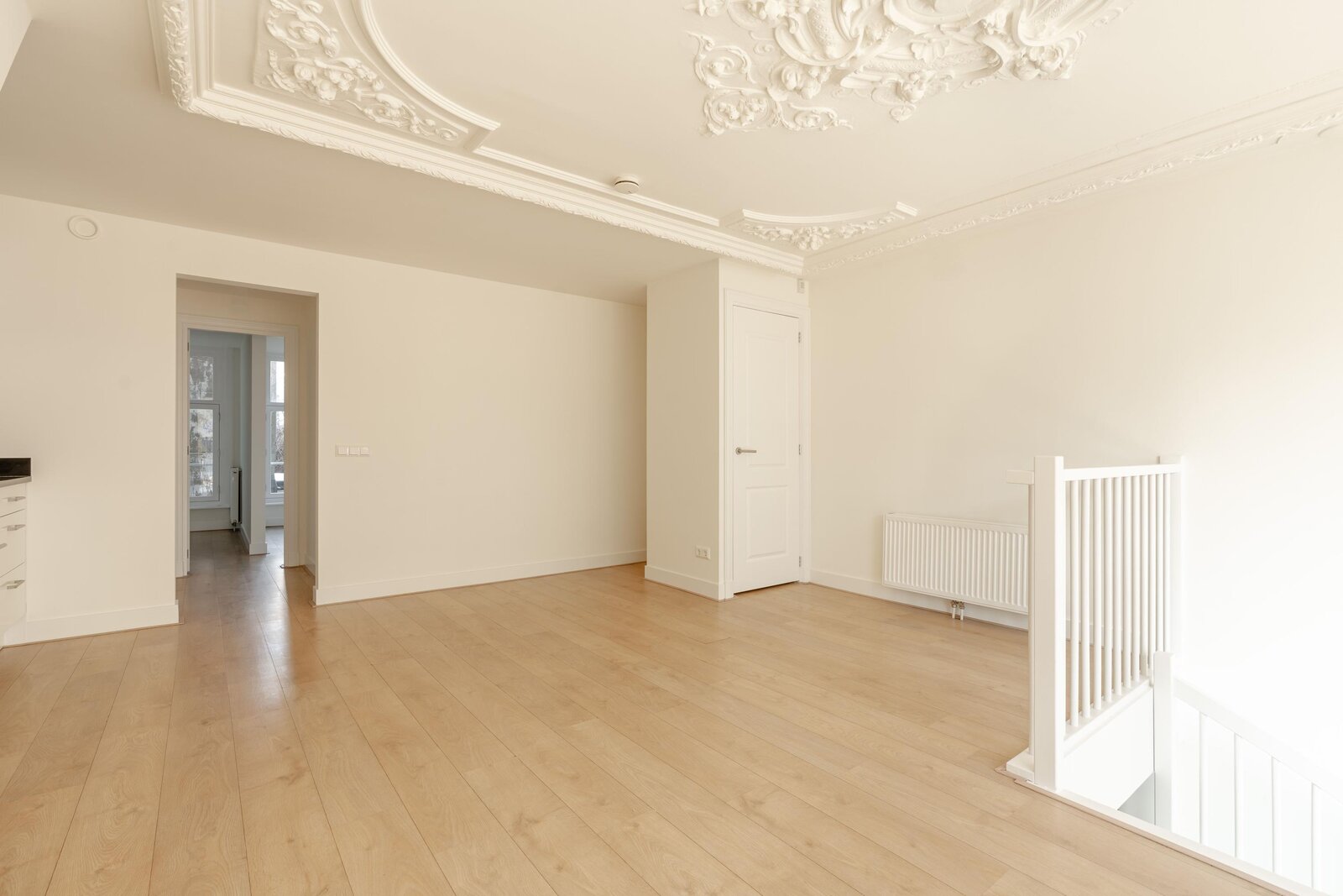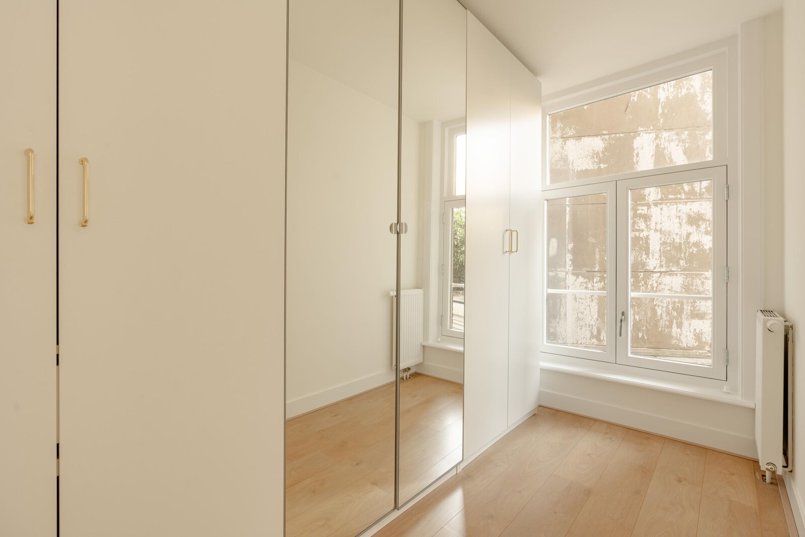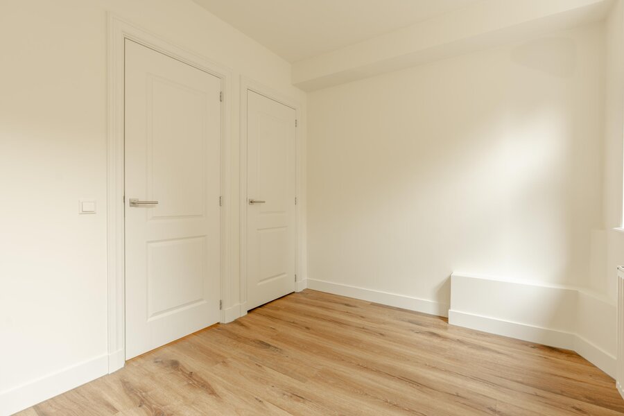 Met drie volwaardige slaapkamers en twee badkamers biedt de woning volop mogelijkheden. De hoofdslaapkamer op de bel-etage beschikt over een kleedkamer/werkkamer en een privé en-suite badkamer met inloopdouche en dubbele wastafel, wat het appartement zeer geschikt maakt voor ouders of hoofdhuurders. Aan de achterzijde bevinden zich nog twee slaapkamers, ideaal als kinder-, werk- of studentenkamers, evenals een tweede ruime badkamer met ligbad, inloopdouche en dubbele wastafel. Daarnaast is er een separaat toilet en een praktische wasruimte. Vanuit één van de slaapkamers is er directe toegang tot de stadstuin.