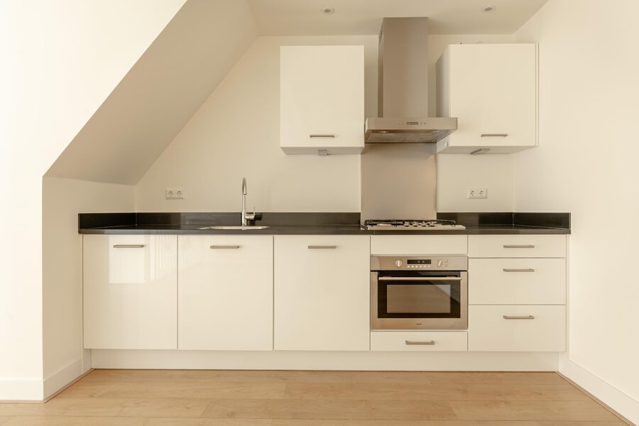 Het appartement beschikt over een ruime en lichte woonkamer, die door de open trap en het grote winkelraam een prettige verbinding heeft met de straat en een fraai uitzicht biedt op de gracht en het Roeters-eiland. De open woonkeuken, gelegen op de vide, is voorzien van diverse inbouwapparatuur en vormt een centraal punt in de woning — ideaal voor gezinnen én voor het samenwonen met meerdere personen.