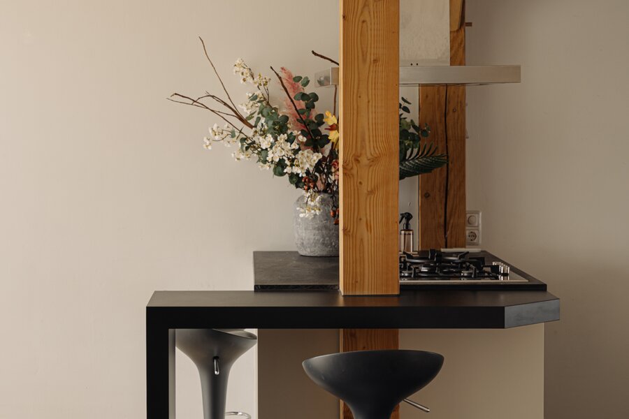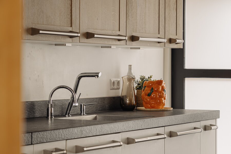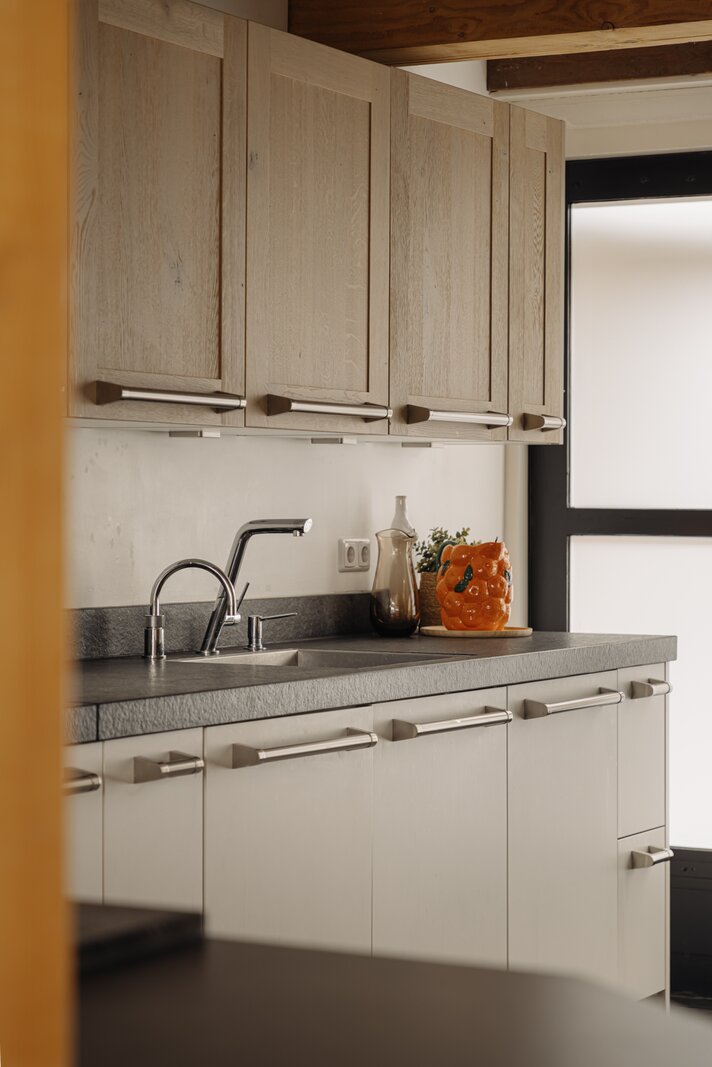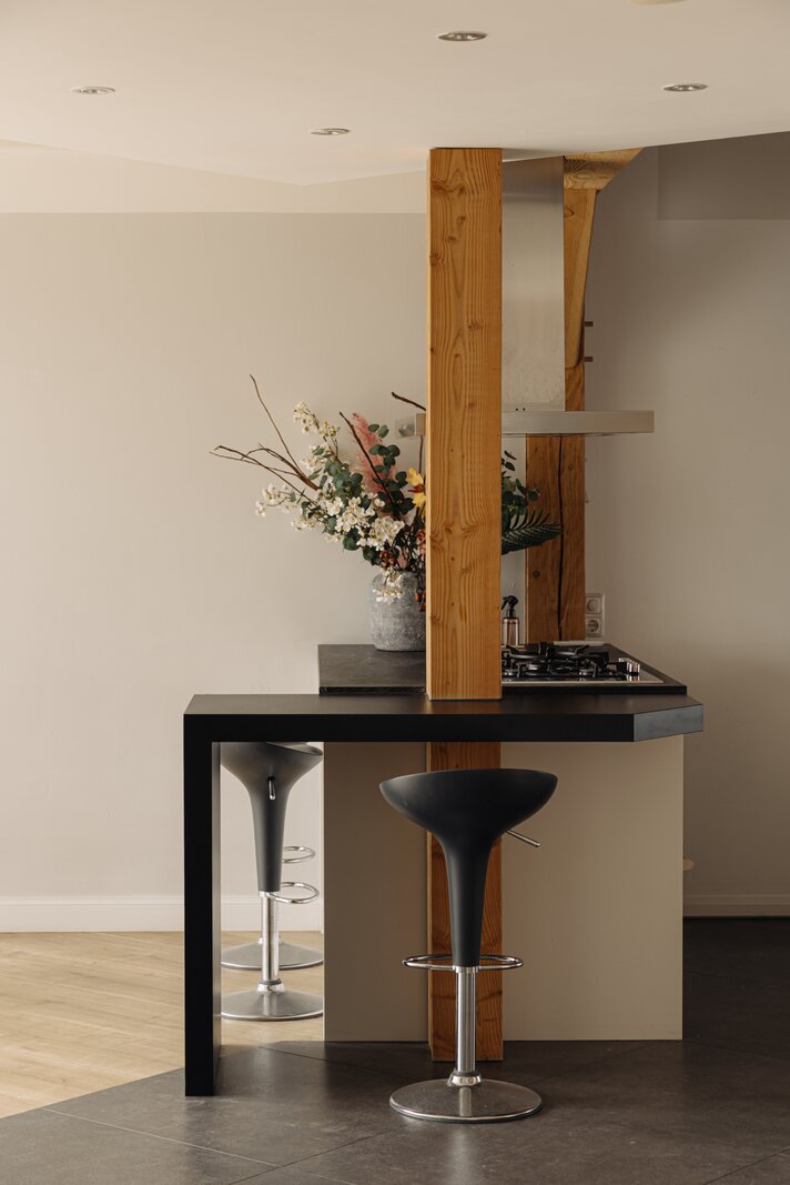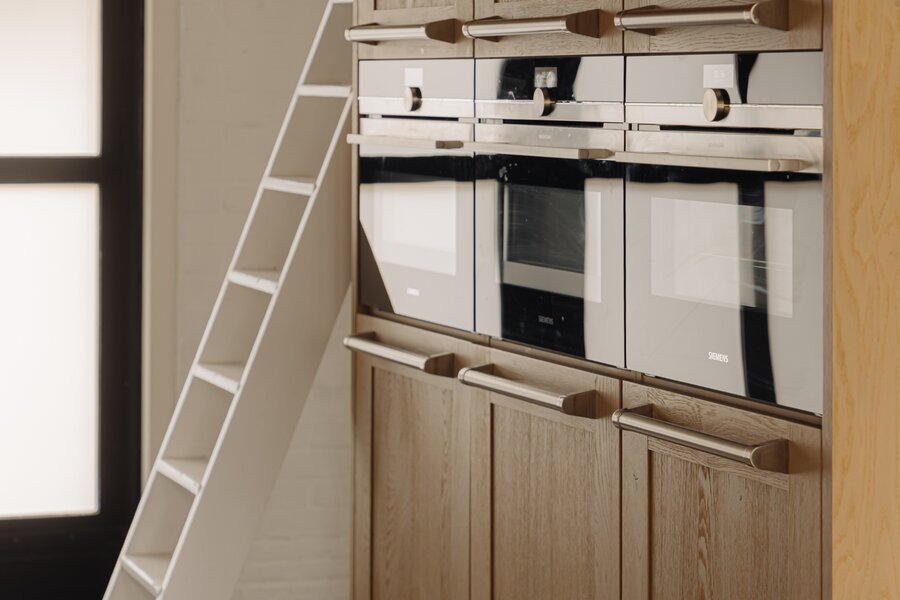 De luxe keuken is royaal opgezet en uitgerust met een bar, veel werk- en bergruimte en een vliering. De keuken is voorzien van hoogwaardige Siemens inbouwapparatuur, waaronder drie ovens (stoom-, hetelucht- en combi-oven), een hoge koelkast en hoge vriezer, een vaatwasser en een Quooker. Aansluitend bevindt zich de praktische pantry met wasmachine- en drogeropstelling en extra bergruimte.