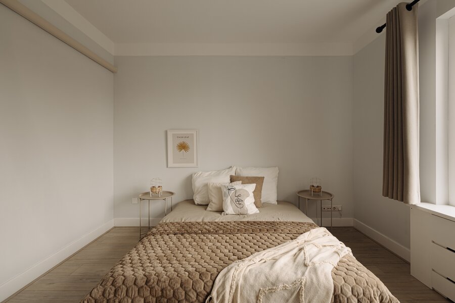 Landing, front bedroom with air conditioning, new window frames, and unobstructed views of the park. Spacious bedroom at the rear, and a third bedroom at the rear/side with access to the balcony. Modern and fully equipped bathroom with a walk-in shower, toilet, and double vanity with vanity.
